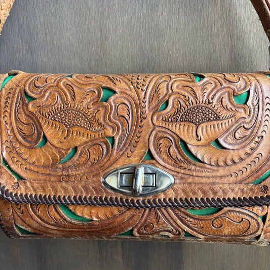 Vintage Chambers Black Tooled Leather Kids Western Belt
