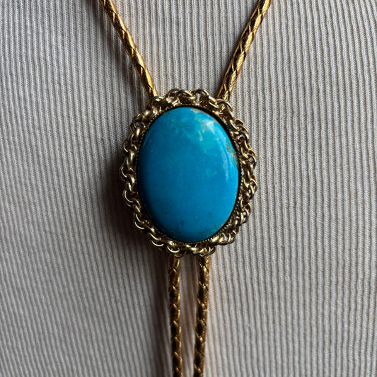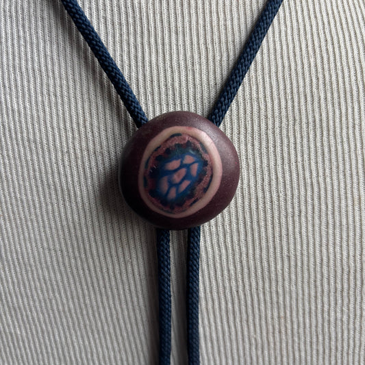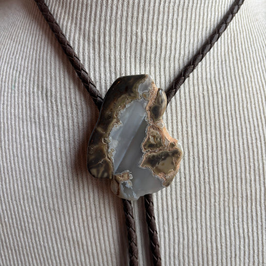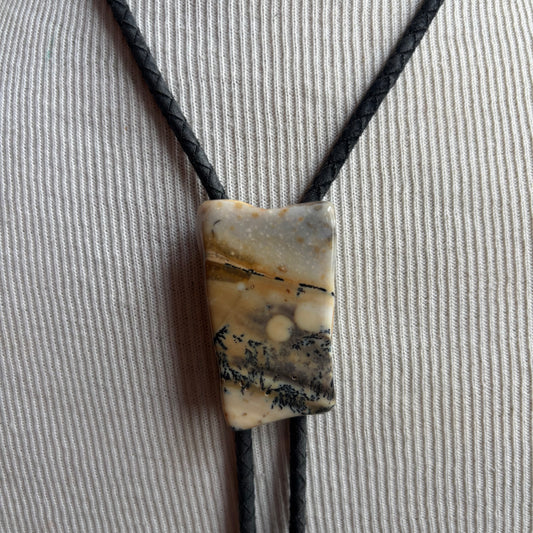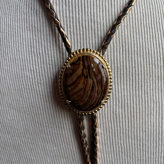 Oval Yellow Tigers Eye Bolo on Two-Tone Metallic Tie
