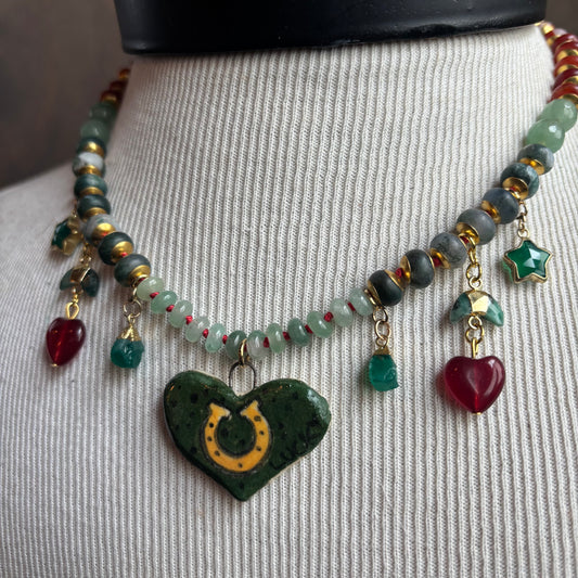 Ostrich Moon Green Heart Charm Necklace