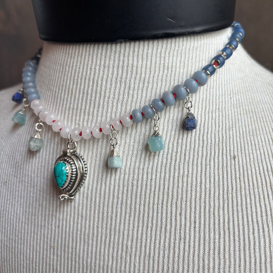 Ostrich Moon Silver Turquoise Poison Box Charm Necklace