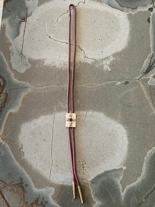 Silver compass with brown cord