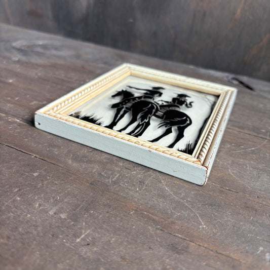 Vintage Glass Western Framed Art