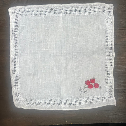 White Table runner Red edging with Red Flowers Green Leaves detailing Floral Small Tablecloth