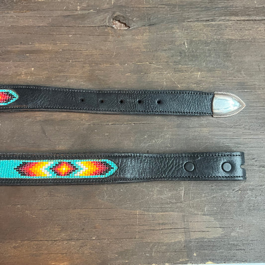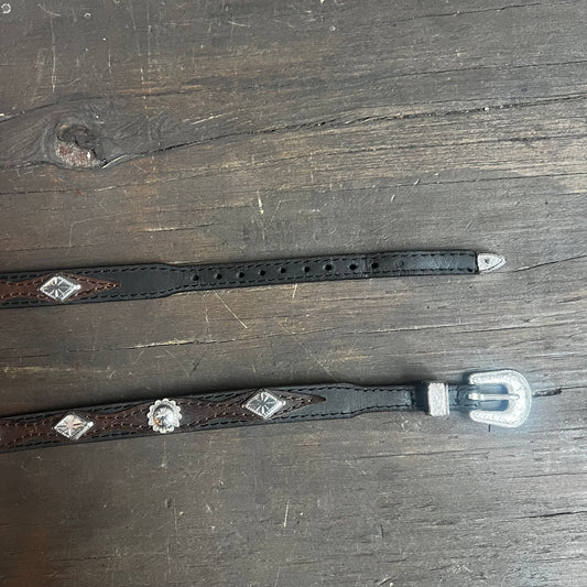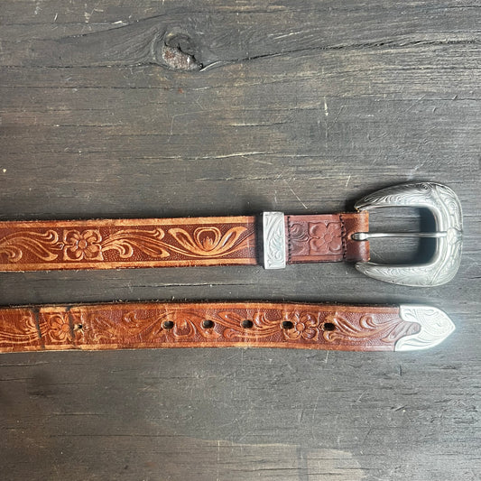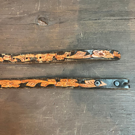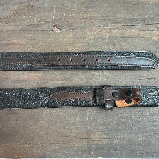 Vintage Chambers Black Tooled Leather Kids Western Belt