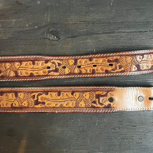 Tony Lama Tooled Leather Belt with Geometric Buckle