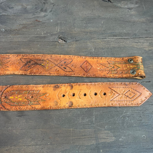 Vintage Leather Belt with Southwestern Designs