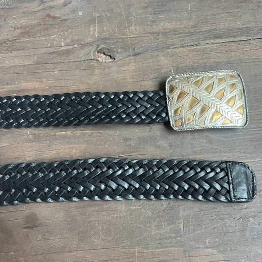 Braided Leather Belt with Silver Buckle