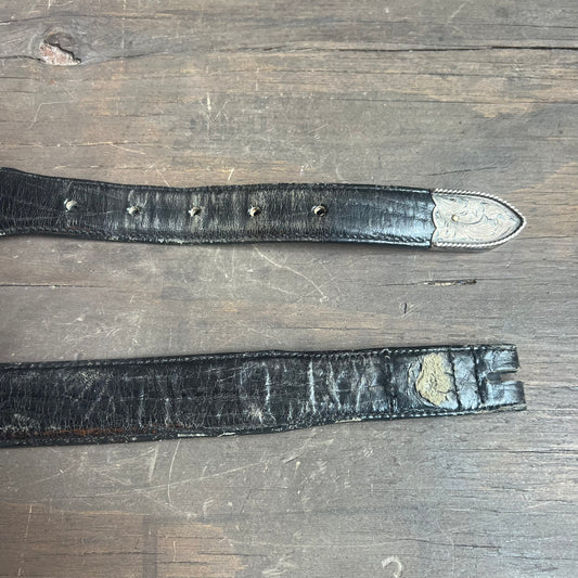Black Leather Belt with Silver Tip