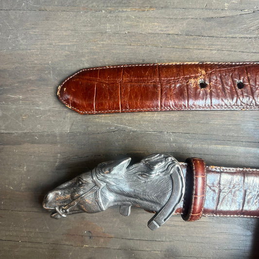 Brighton Embossed Leather Belt with Horse Head Buckle