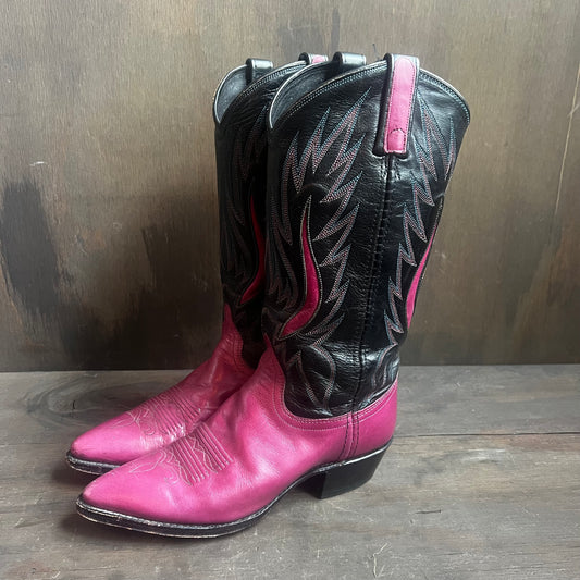 Dan Post Pink and Black Two- Tone Leather Boots