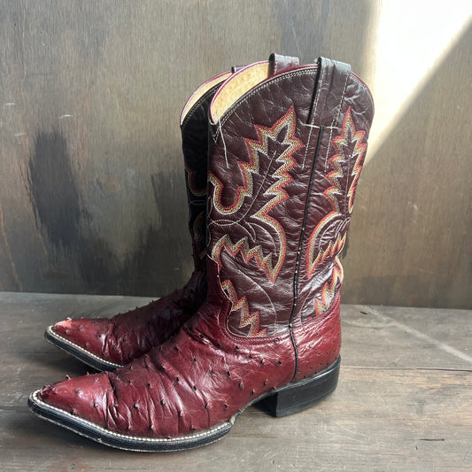Custom Made Burgundy Ostrich and Leather Cowgirl Boots