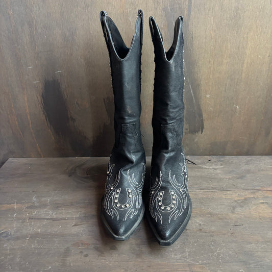 Black Rhinestone Horseshoe Boots