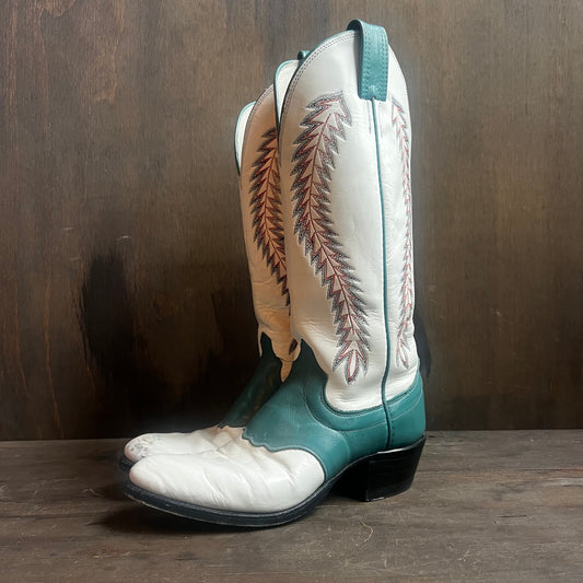 Olathe White and Teal Leather Boots