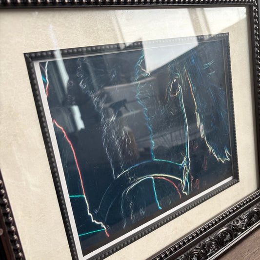Neon Horse Outline Framed Art