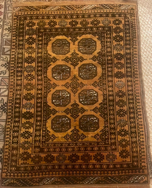 Hand Knotted Brown and Gold Wool Rug