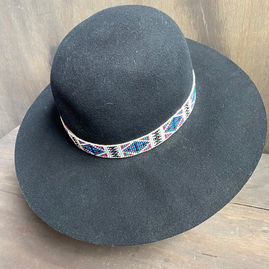 Handmade Black Felt Hat with Beaded Band