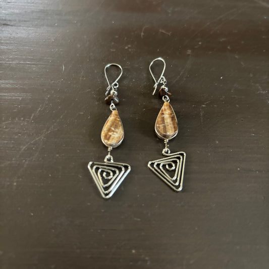 Mac Warman Vintage Brass Sunburst Chain Earrings