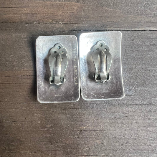 Sterling Silver and Malachite Diamond Shaped Earrings