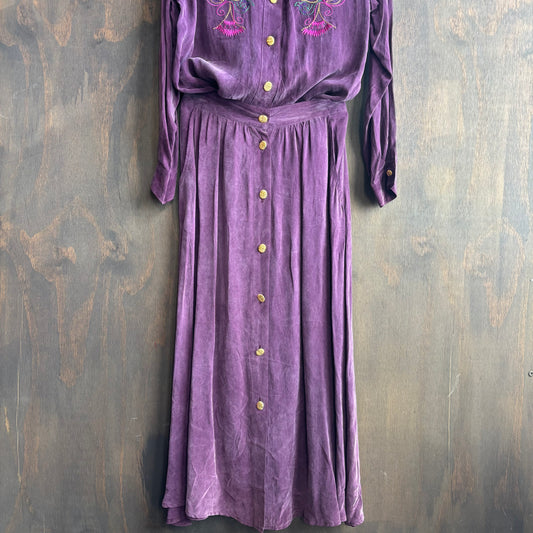 Purple Silk-Feel Embroidered Set (3 pieces)