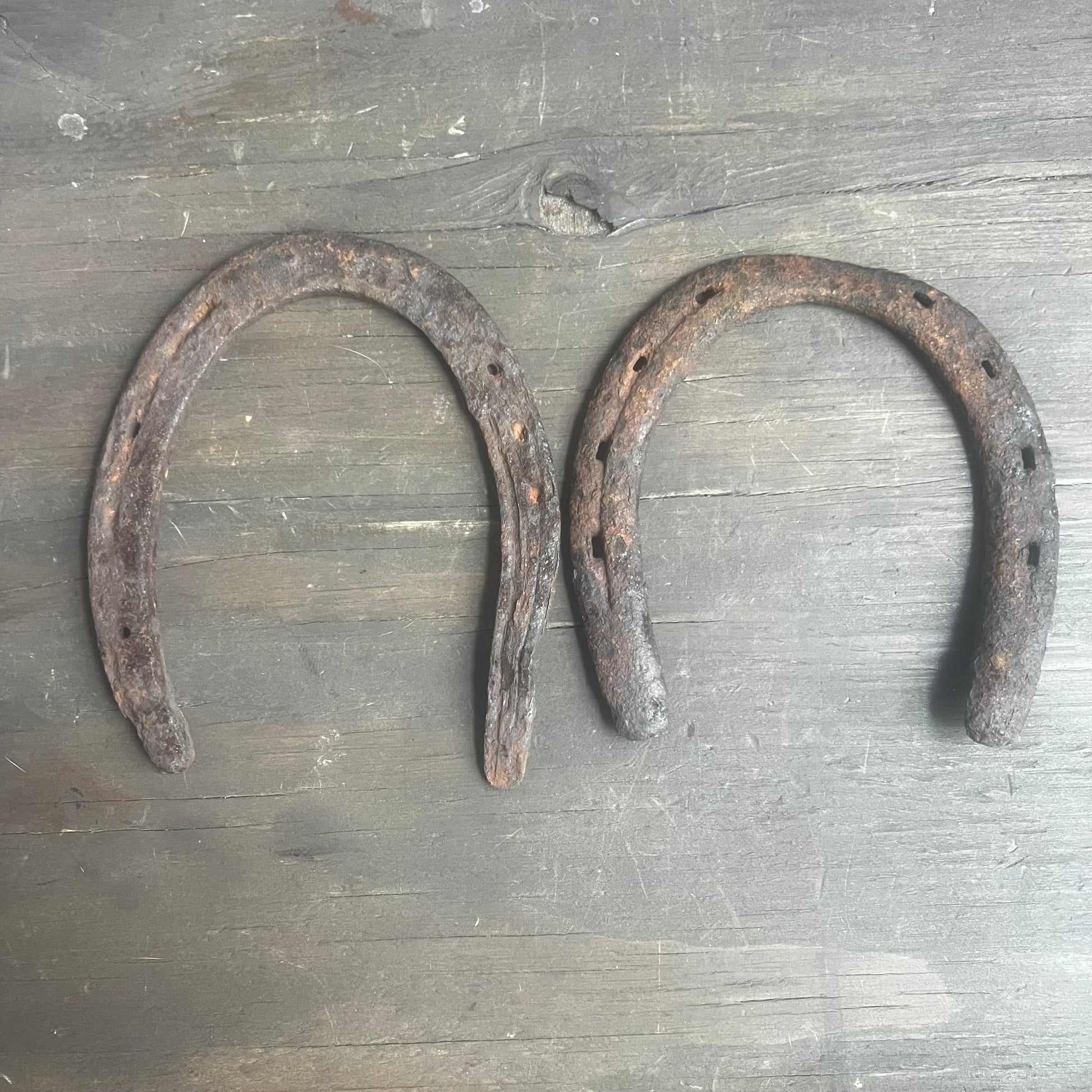 Vintage iron horseshoes from the 1930s, in good vintage condition. The perfect way to add a little western flair to your home!