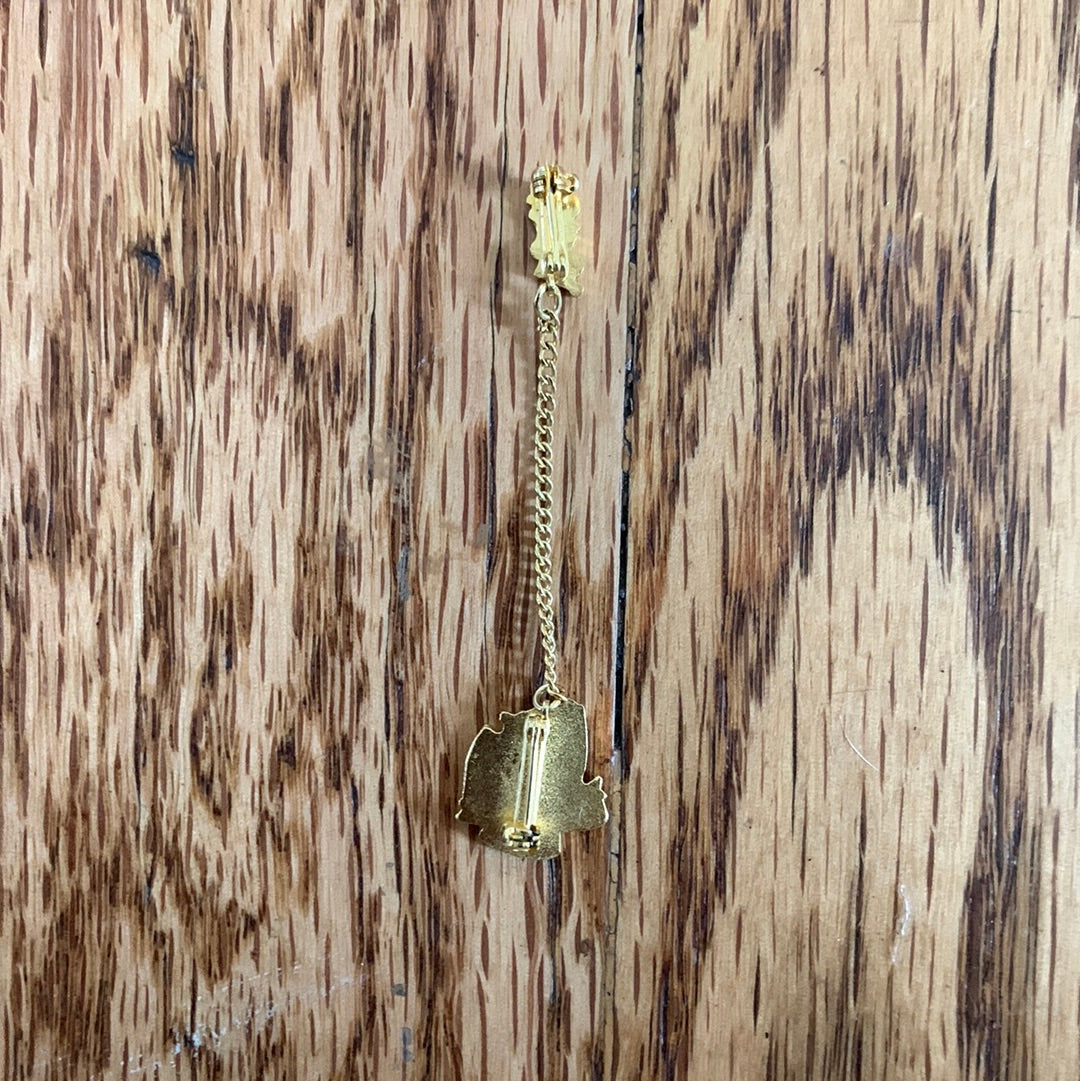 Double pin with chain connecting, fabulous vintage piece for theatre lovers. Gold plated.