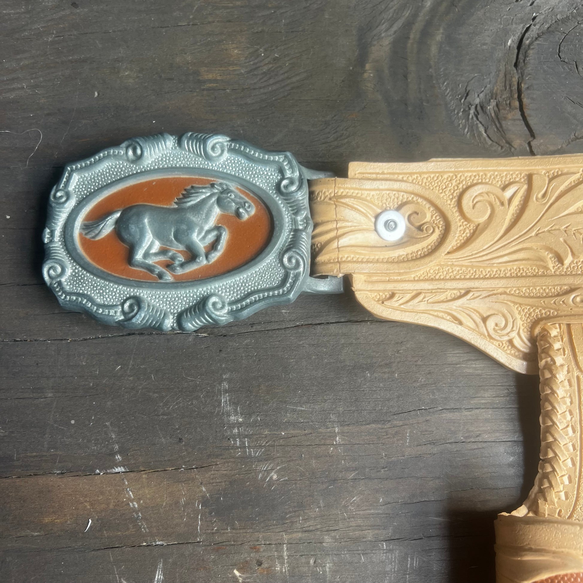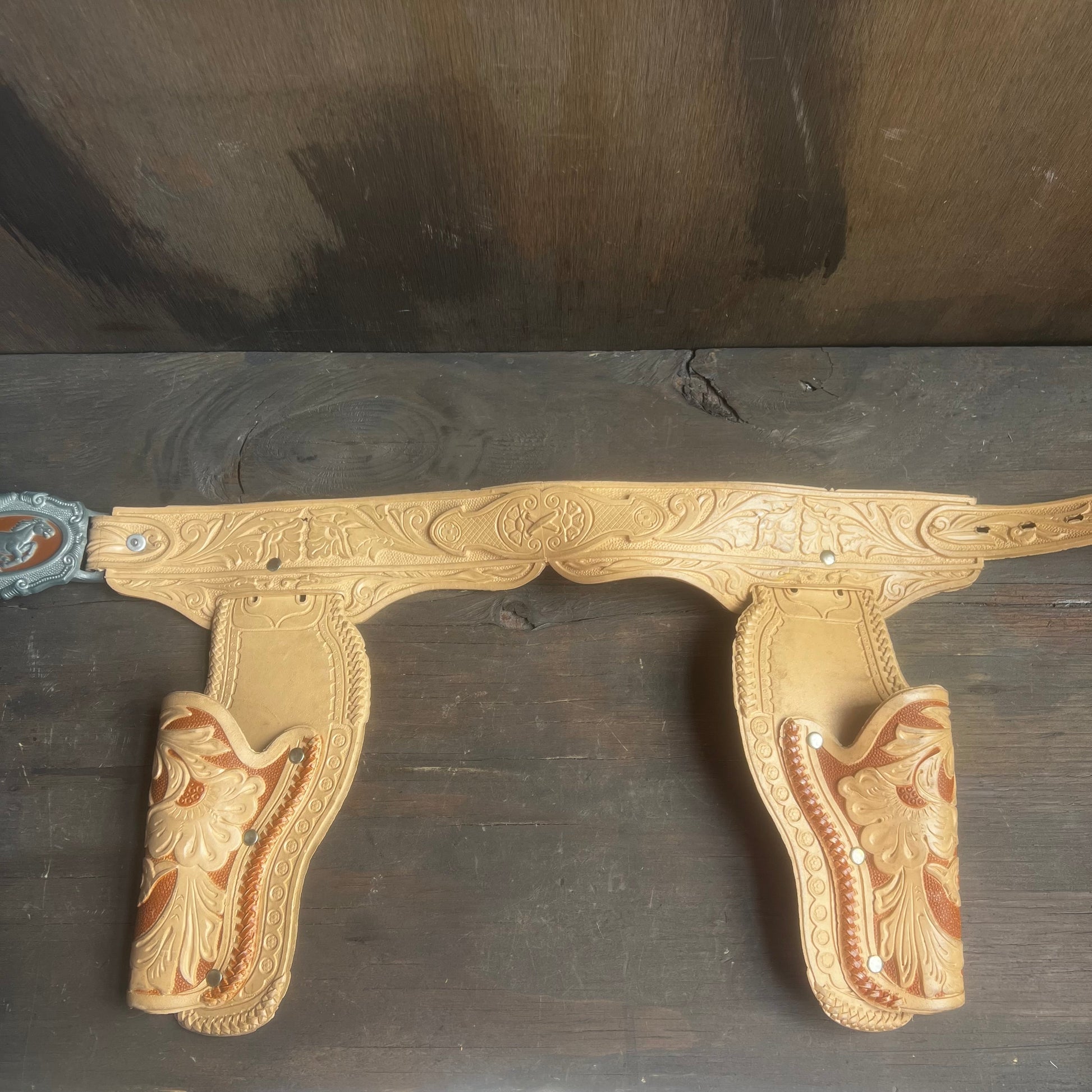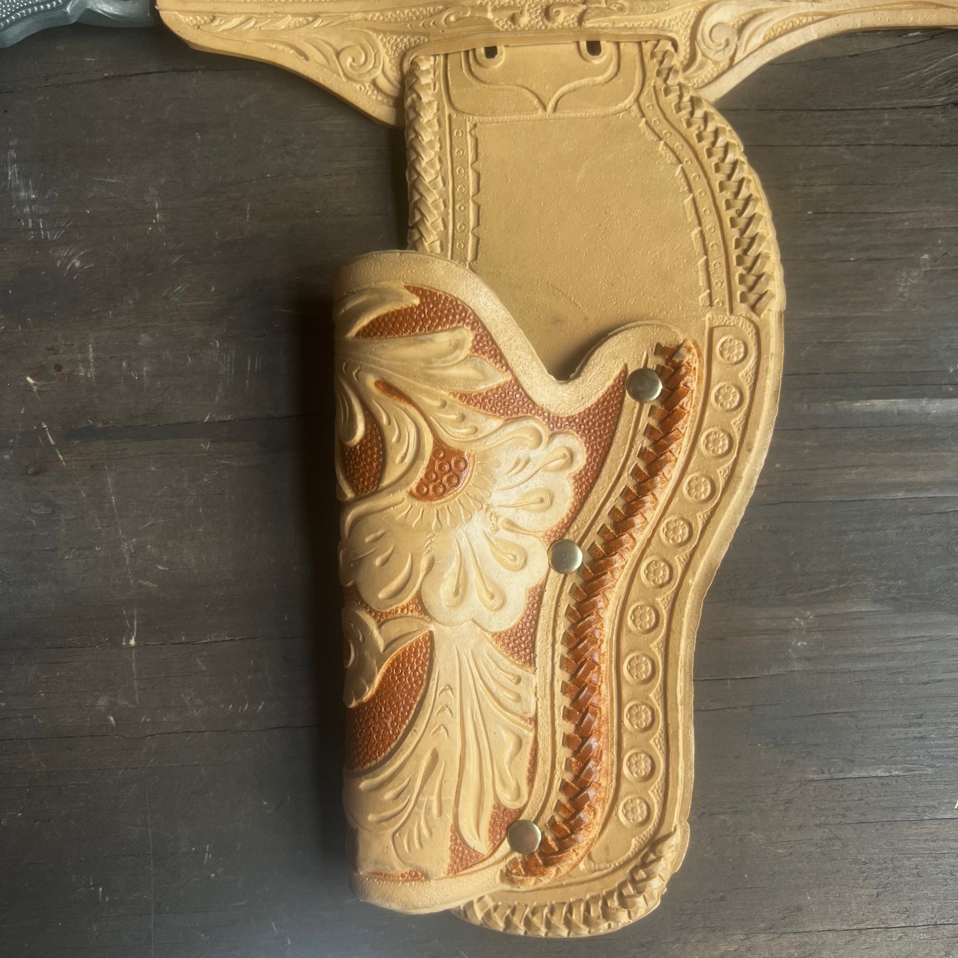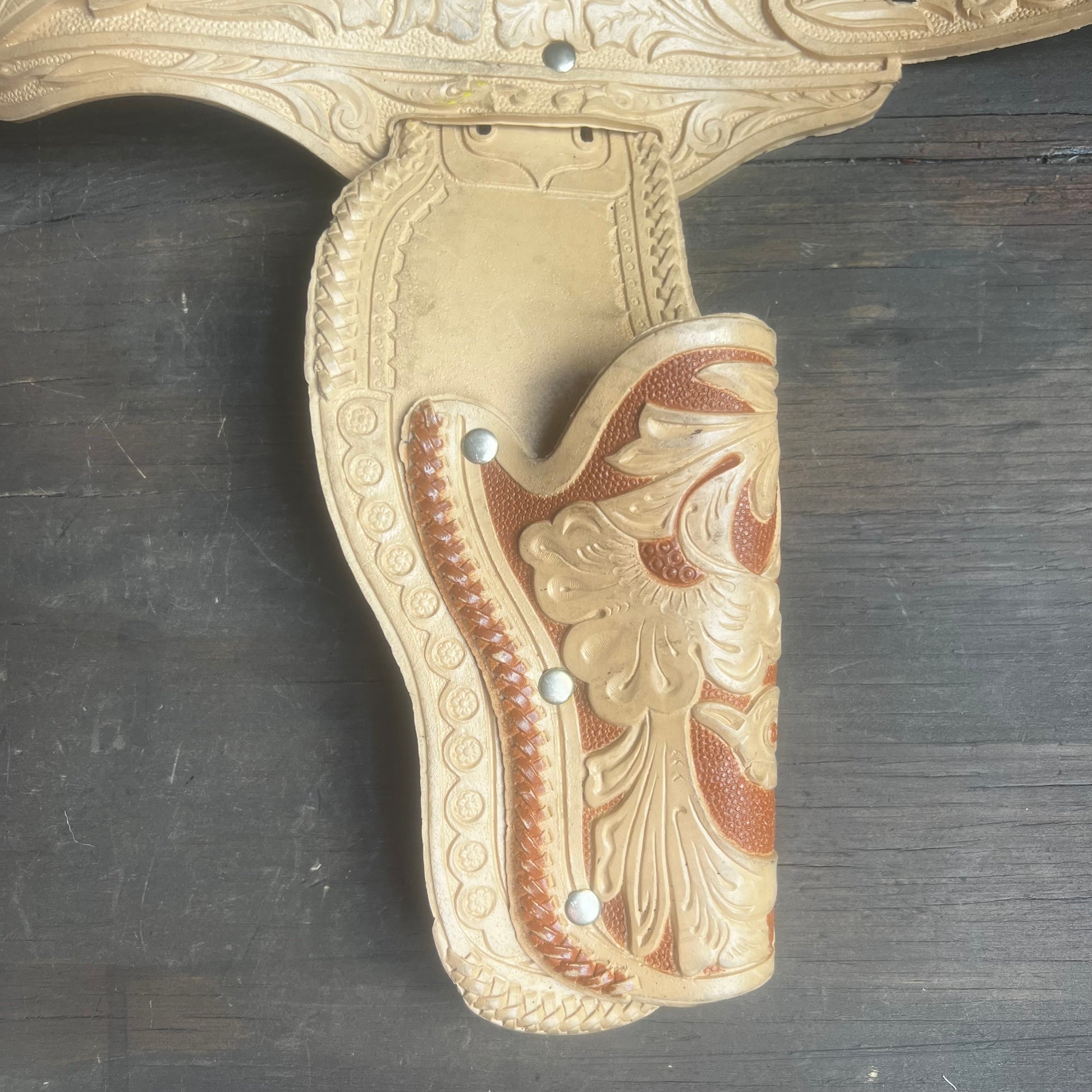 Vintage toy gun holster made from tooled faux leather. Coolest vintage collectors item. In excellent condition, fits children sizes.
