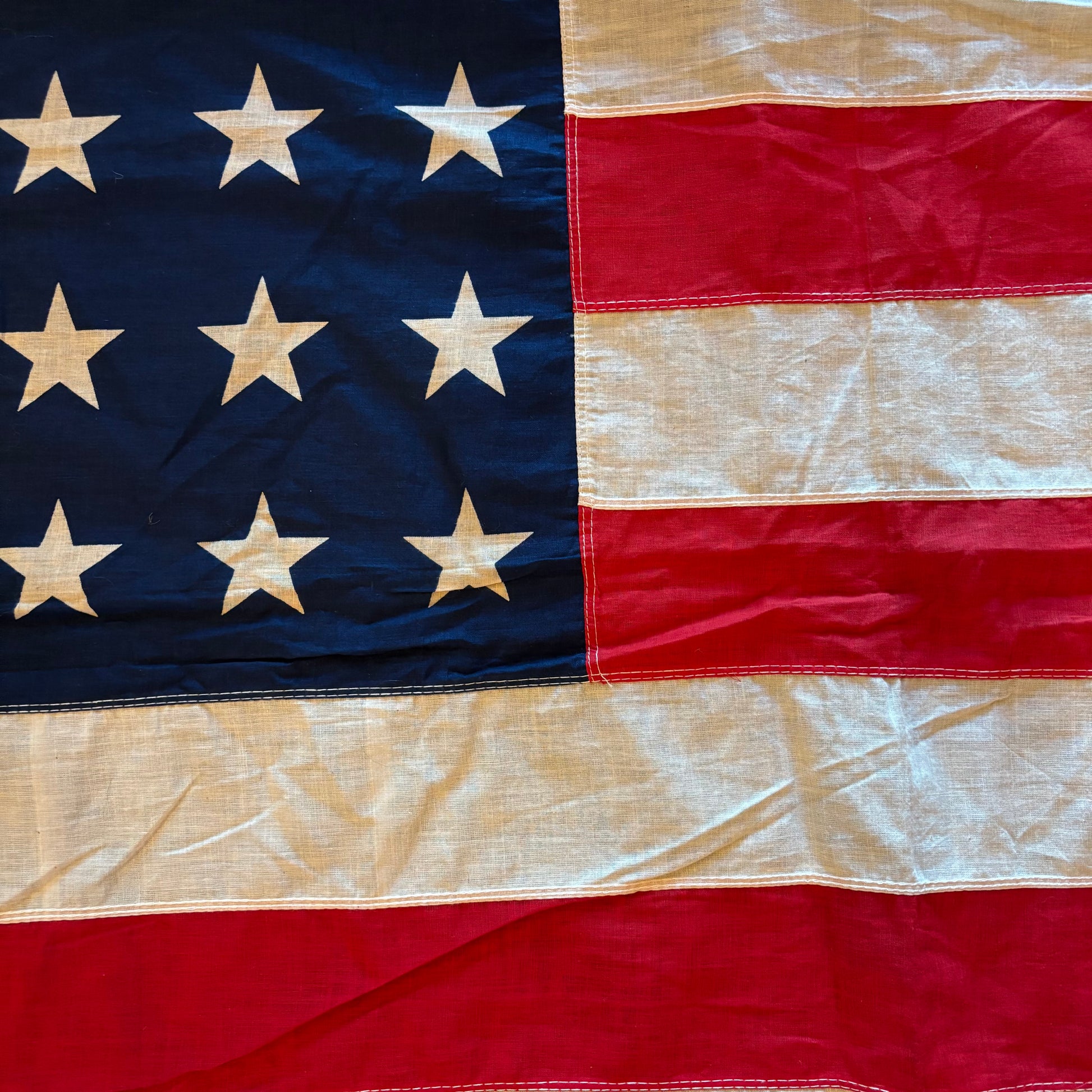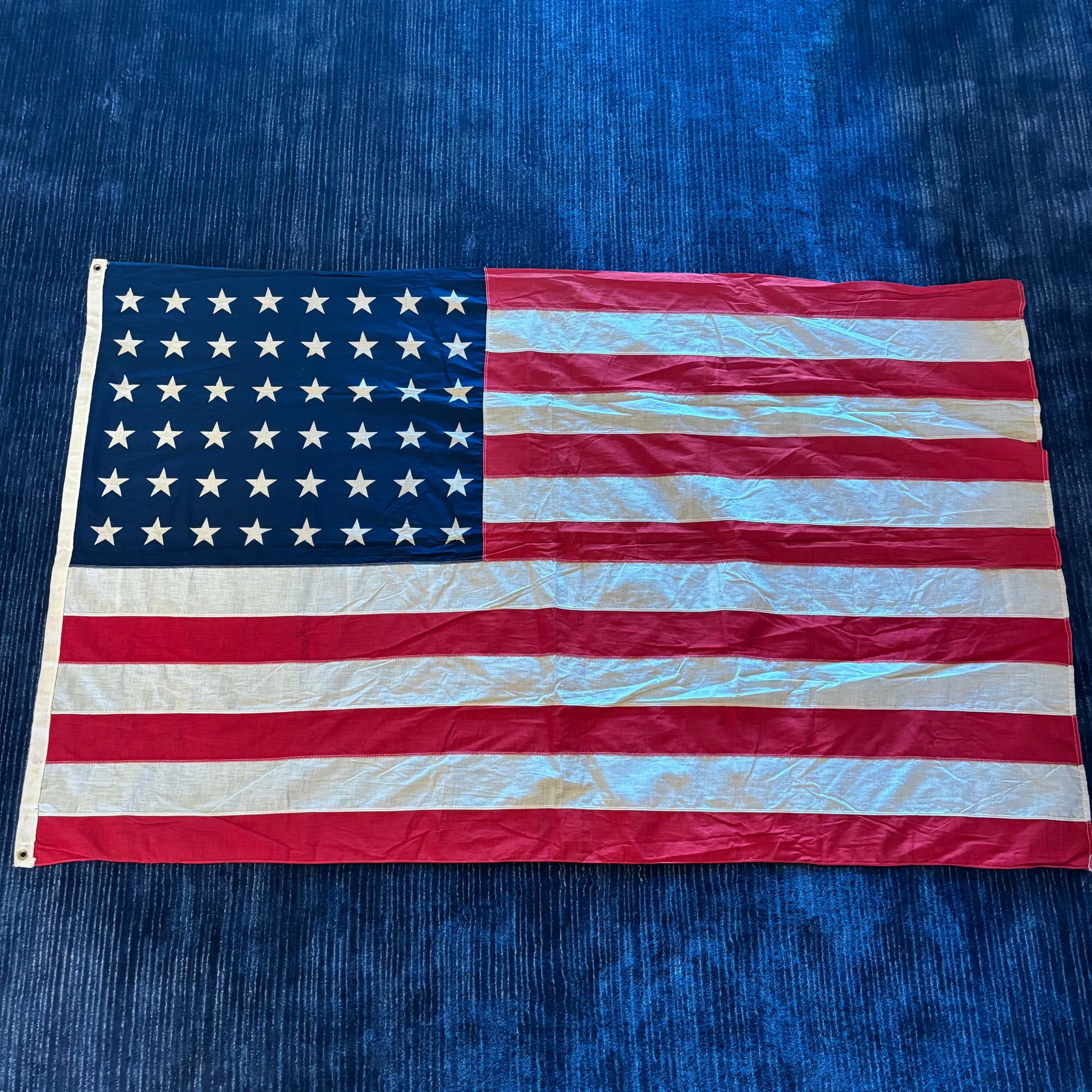Authentic 48-star flag in great condition, exact age unknown, 45 x 70"