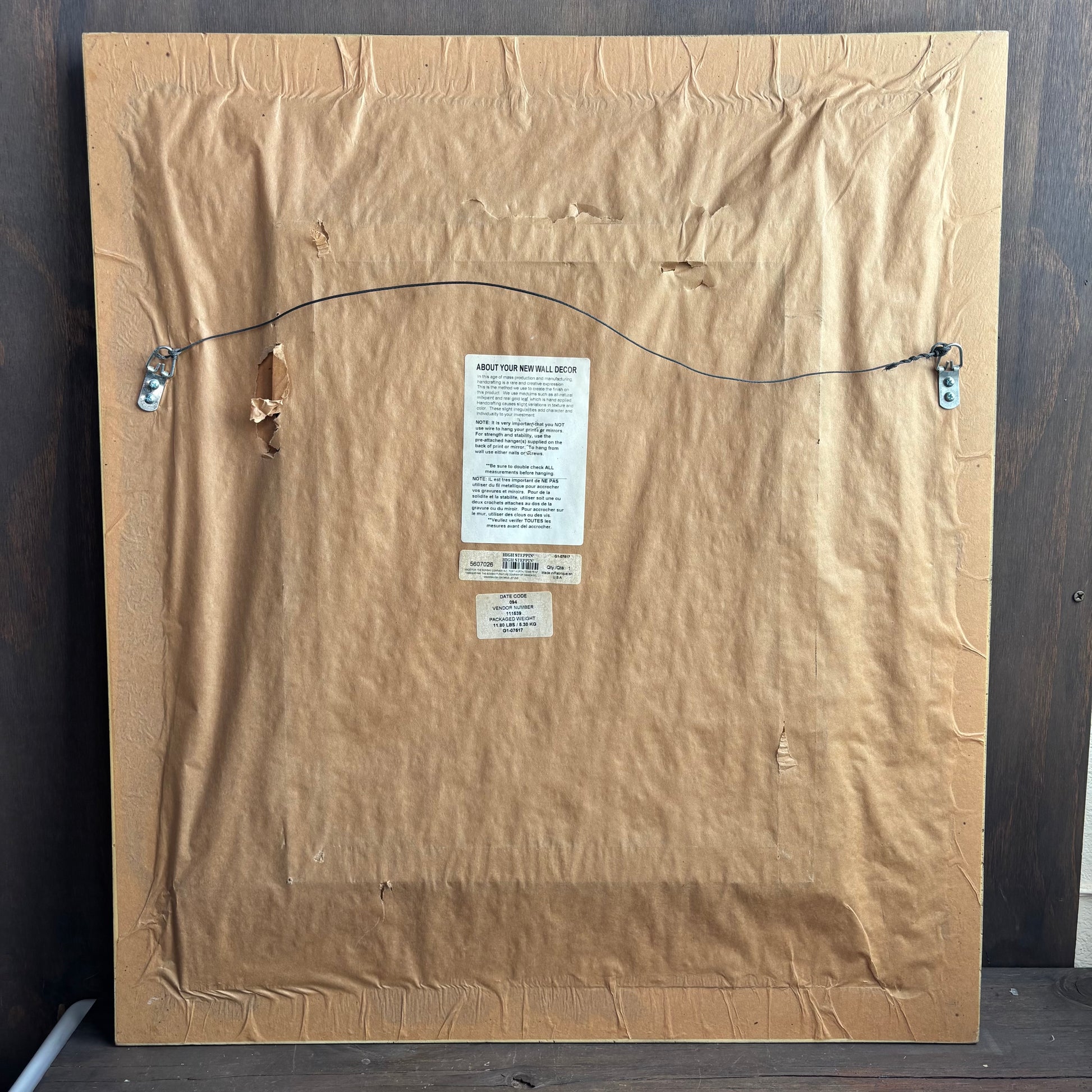 Good looking abstract faux-aged painting of a horse by Karen Dupree with large black and gold wood frame, 29 x 33"