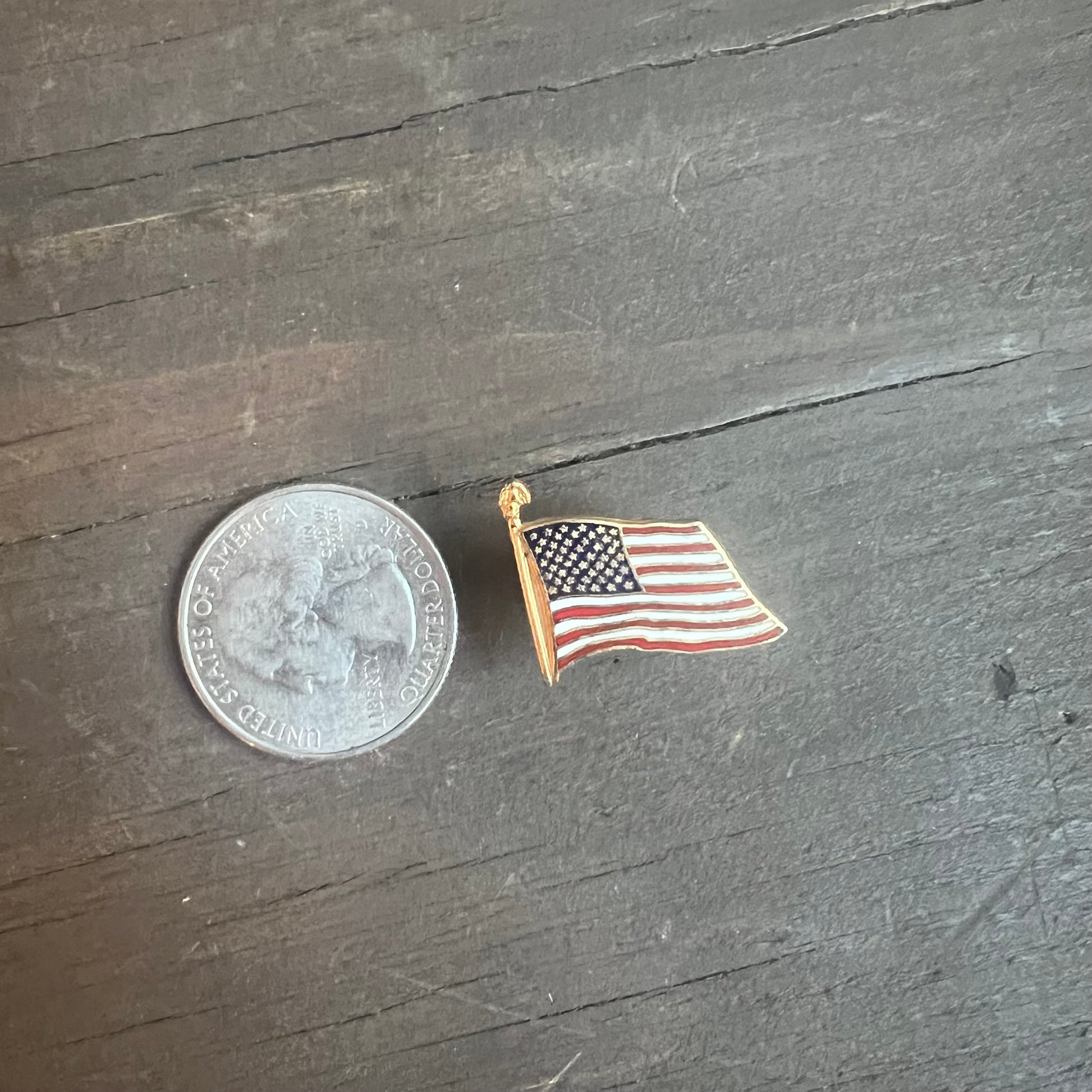Show off your country pride with this American flag pin! Pin it to your denim jacket, attach it to your favorite bag, or use it to customize a hat! In great condition. See image with quarter for scale.