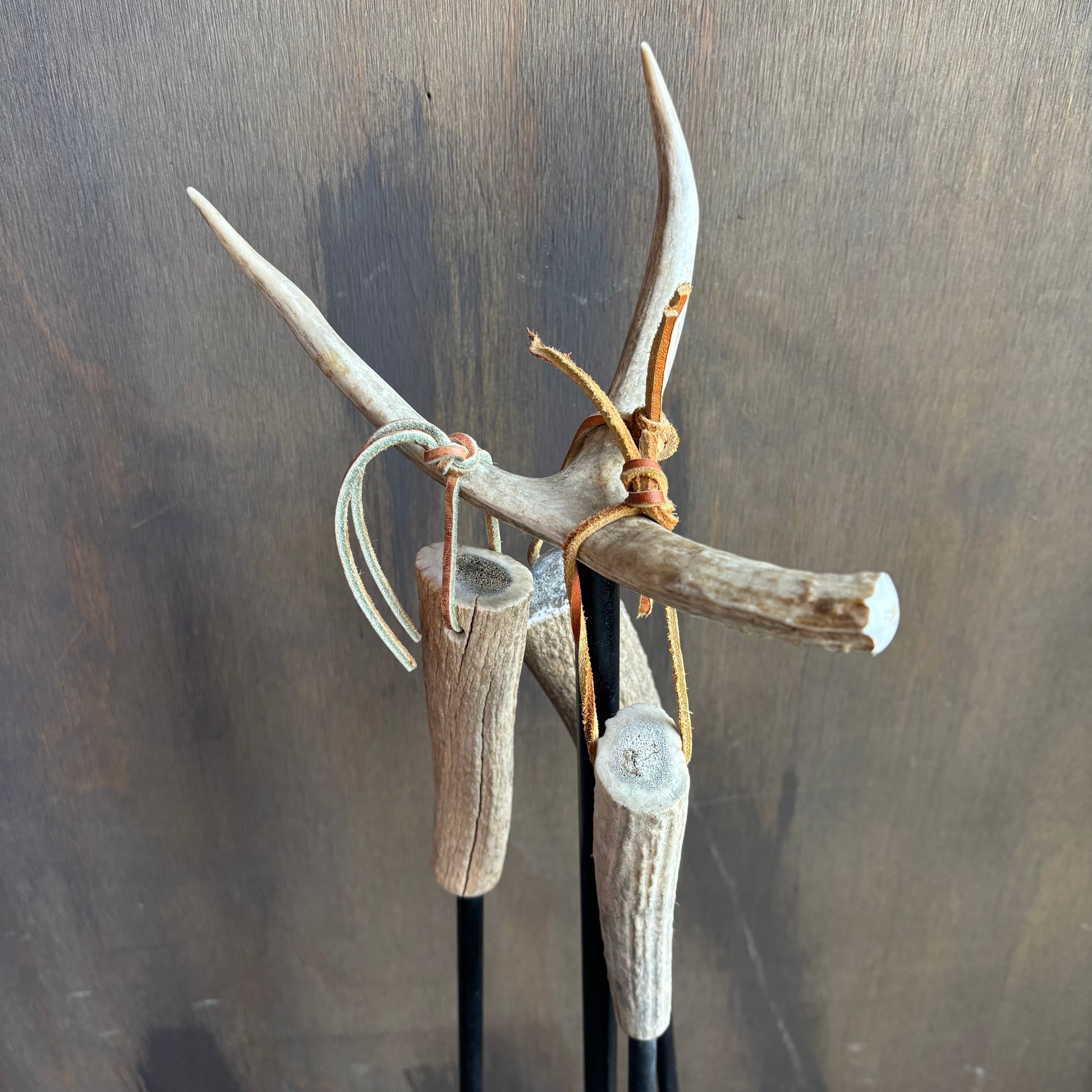 Rustic style fireplace set with antler base and top, includes three tools, 30” tall.