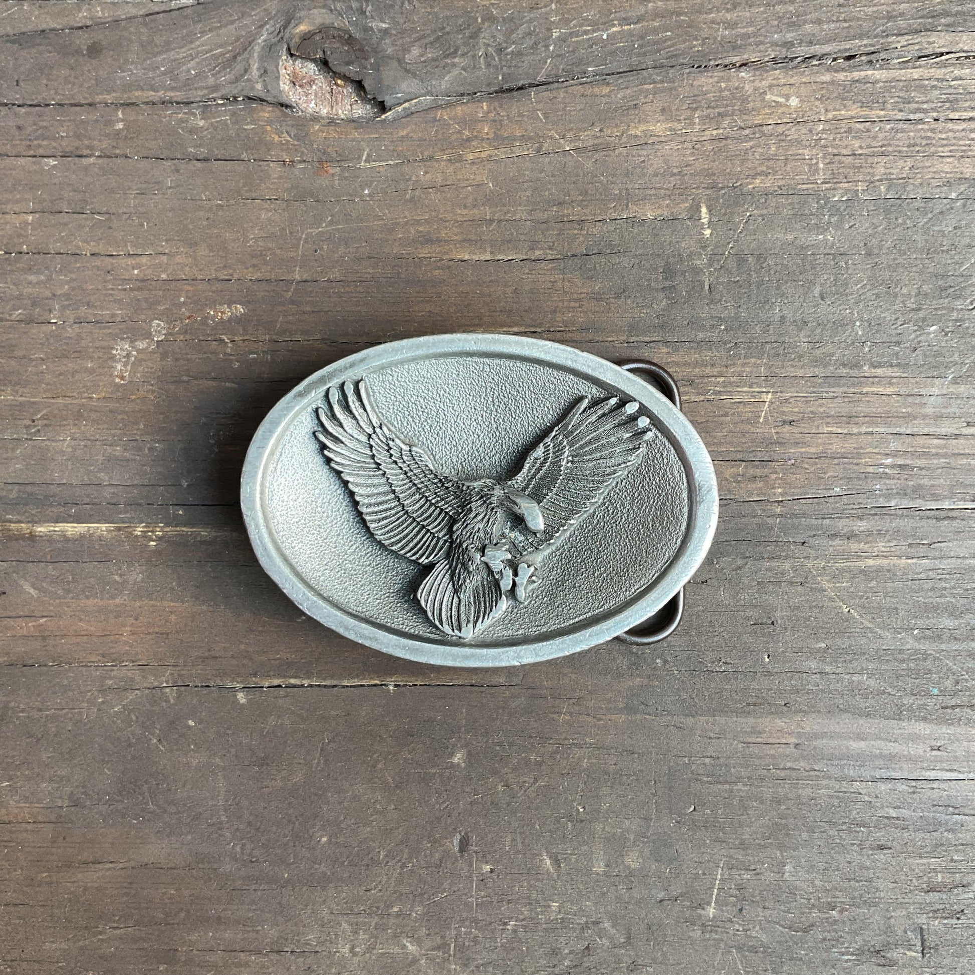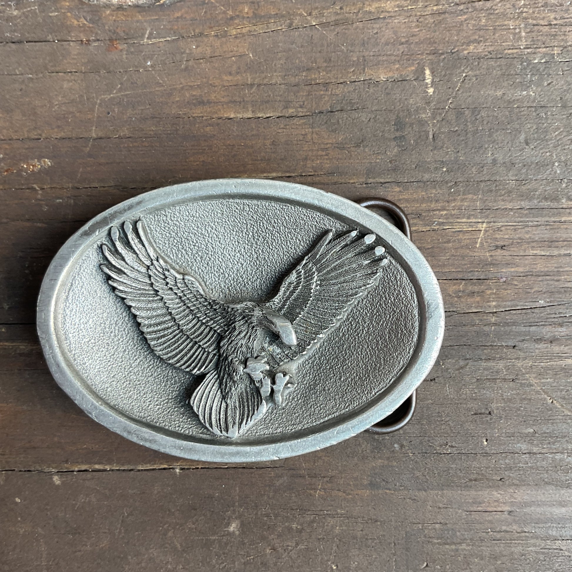 Vintage belt buckle with a standout bald eagle catching prey with it's mouth. In excellent condition, made from brass. About 3" across.