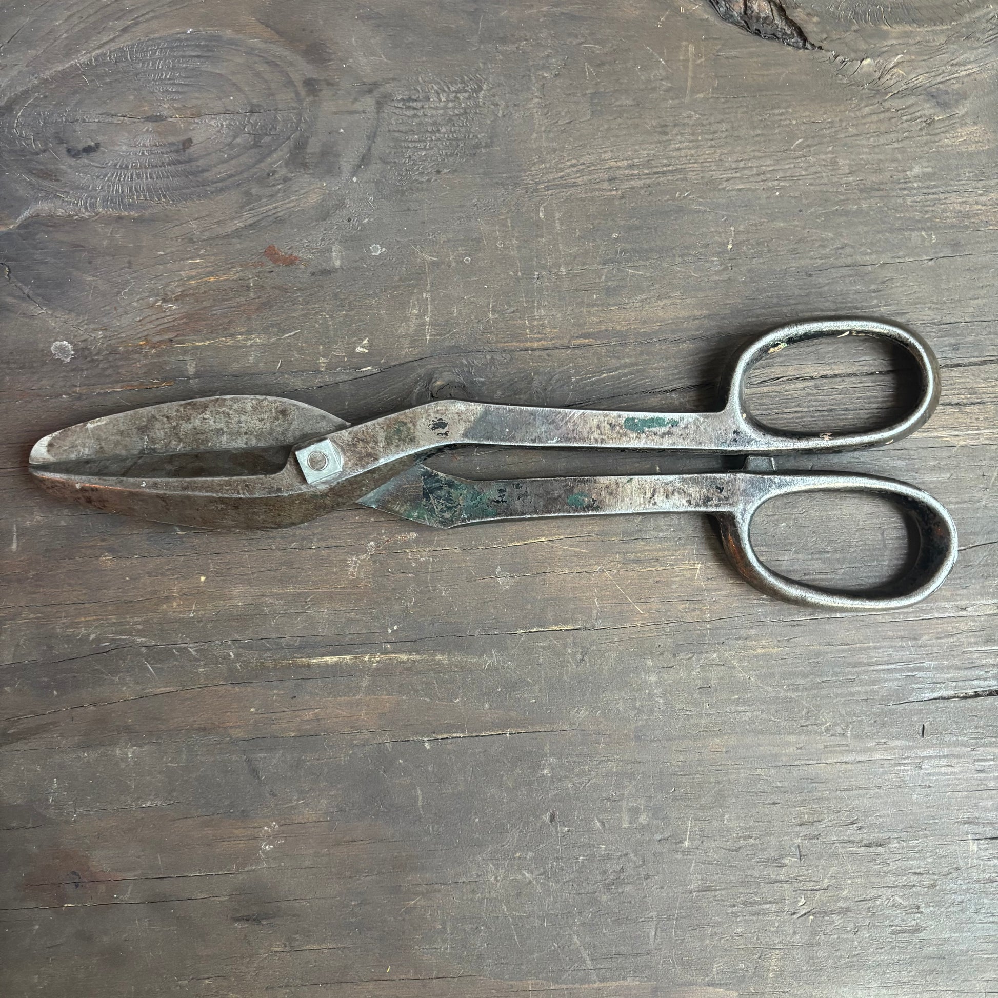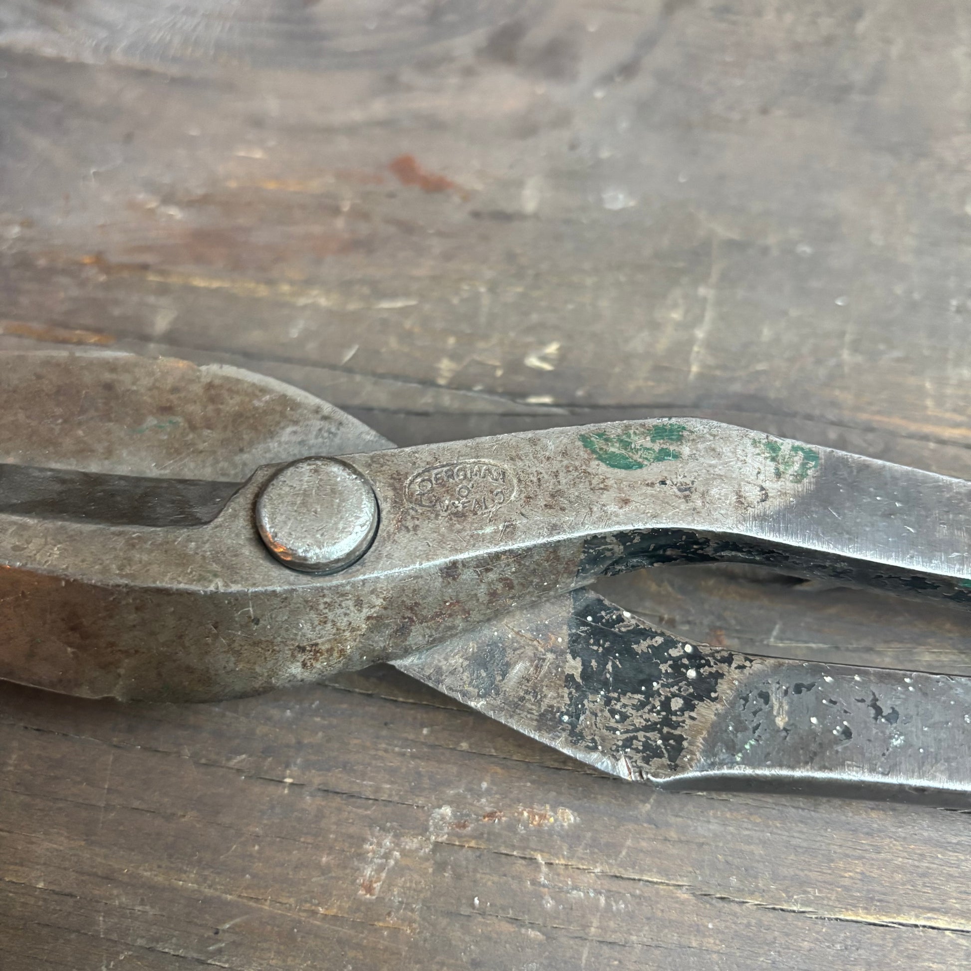 Sturdy 12" vintage shears / scissors made by The Bergman Tool Manufacturing Company, which was founded in 1904 in Buffalo, New York. The company was a manufacturer of adjustable wrenches, pliers, battery service tools, and other tools, and their products were sold under the Bergman, "Queen City", and "Blue Bird" brands.
