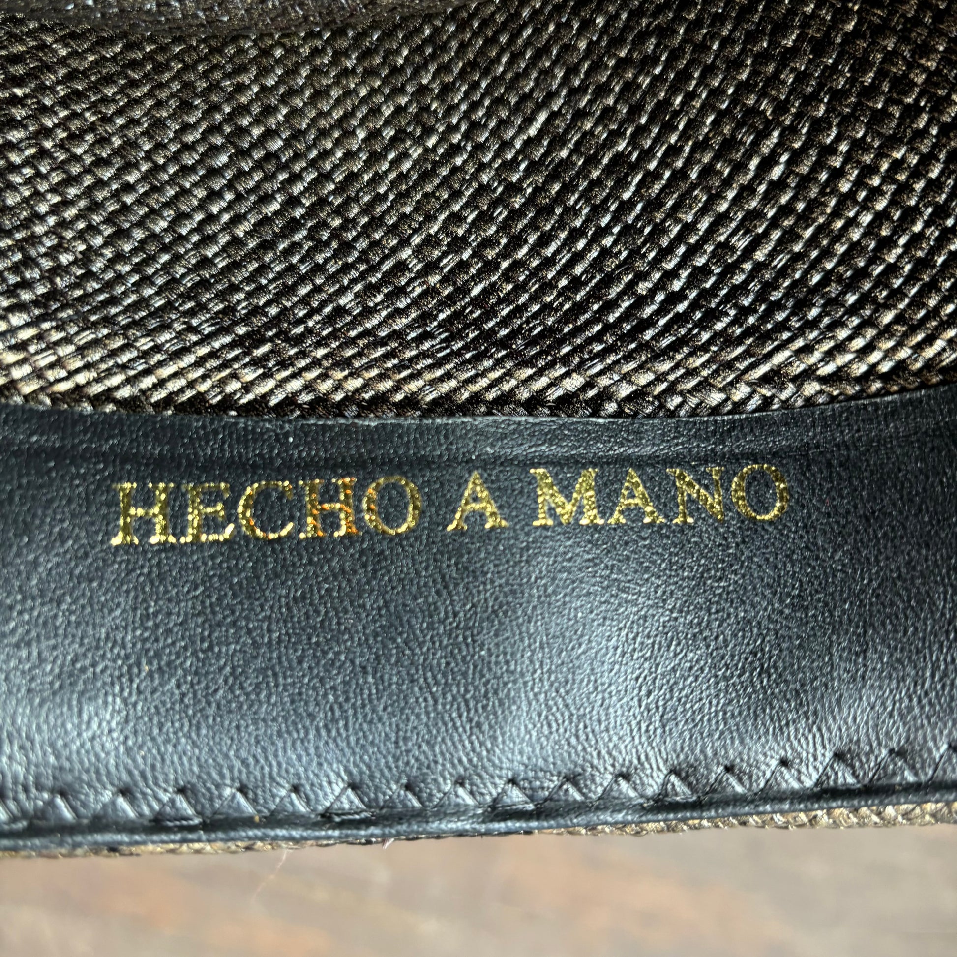 Gorgeous black woven fedora with hand painted leopard print on underside, handmade by Pachuco Supply Company, fits like a 7 3/4.