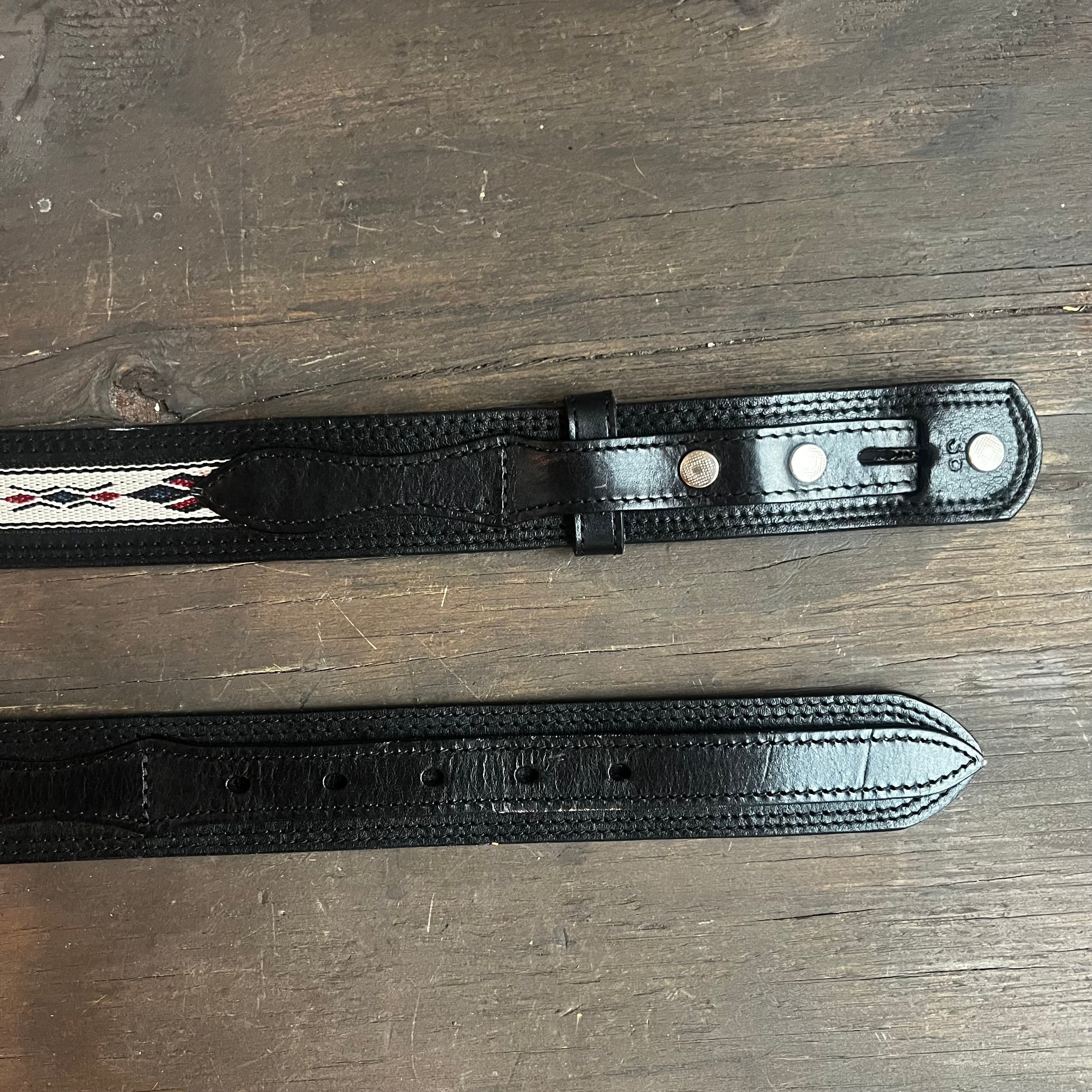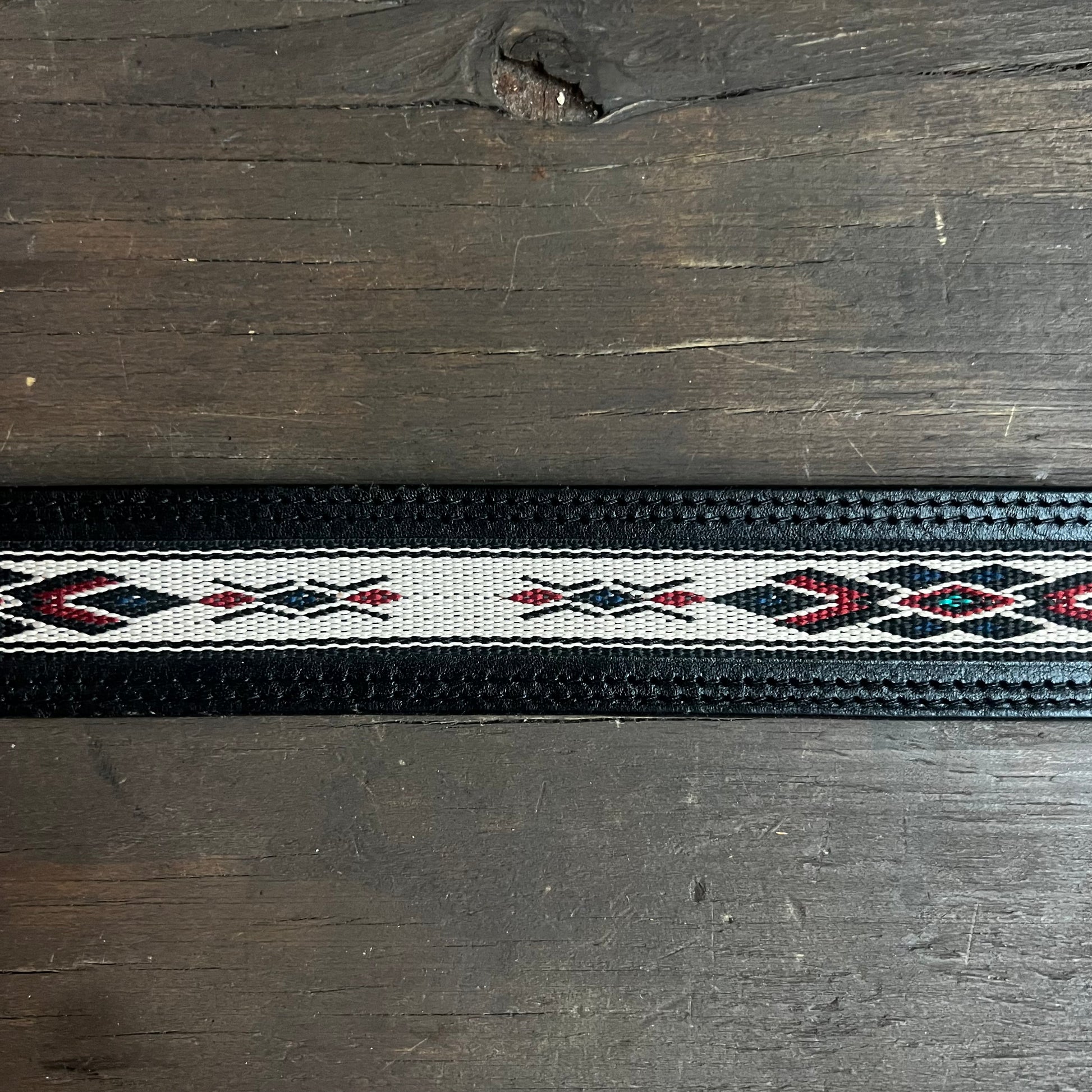 Beautiful black leather belt with Aztec style embroidered inlay. Made from genuine leather, in excellent condition. Size 36.