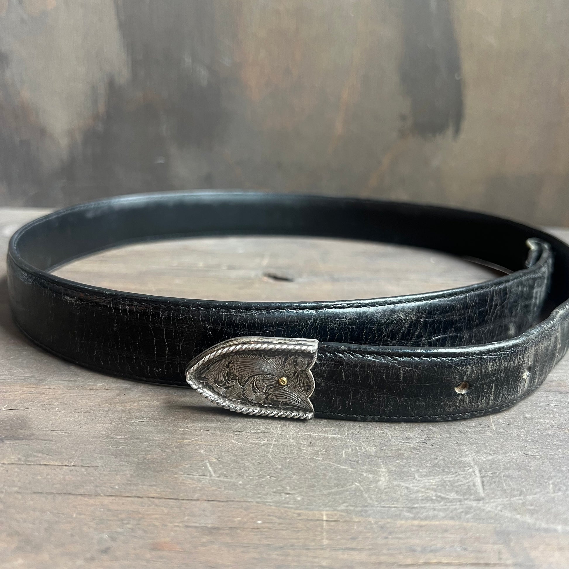 Black Leather Belt with Silver Tip