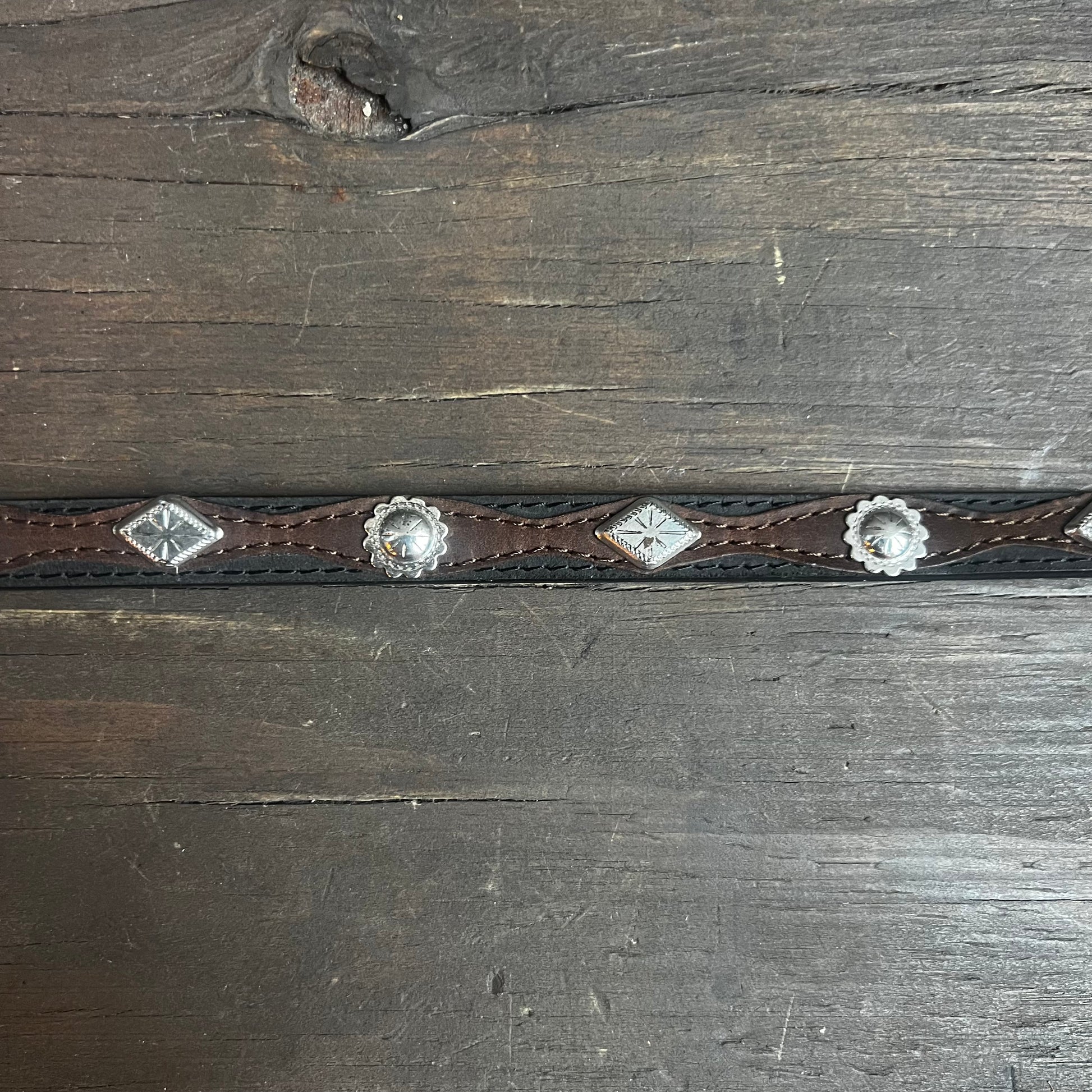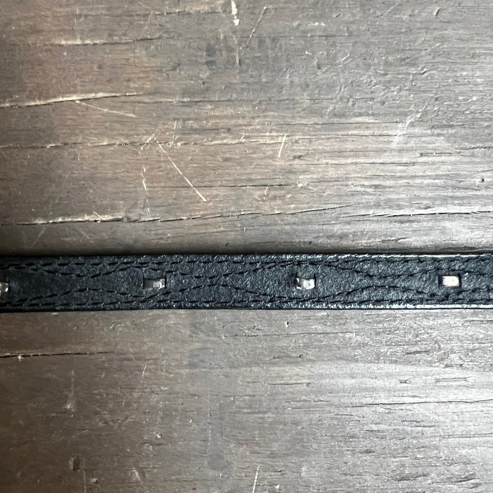 Stunning thin black leather hat band with silver studs. In excellent condition.