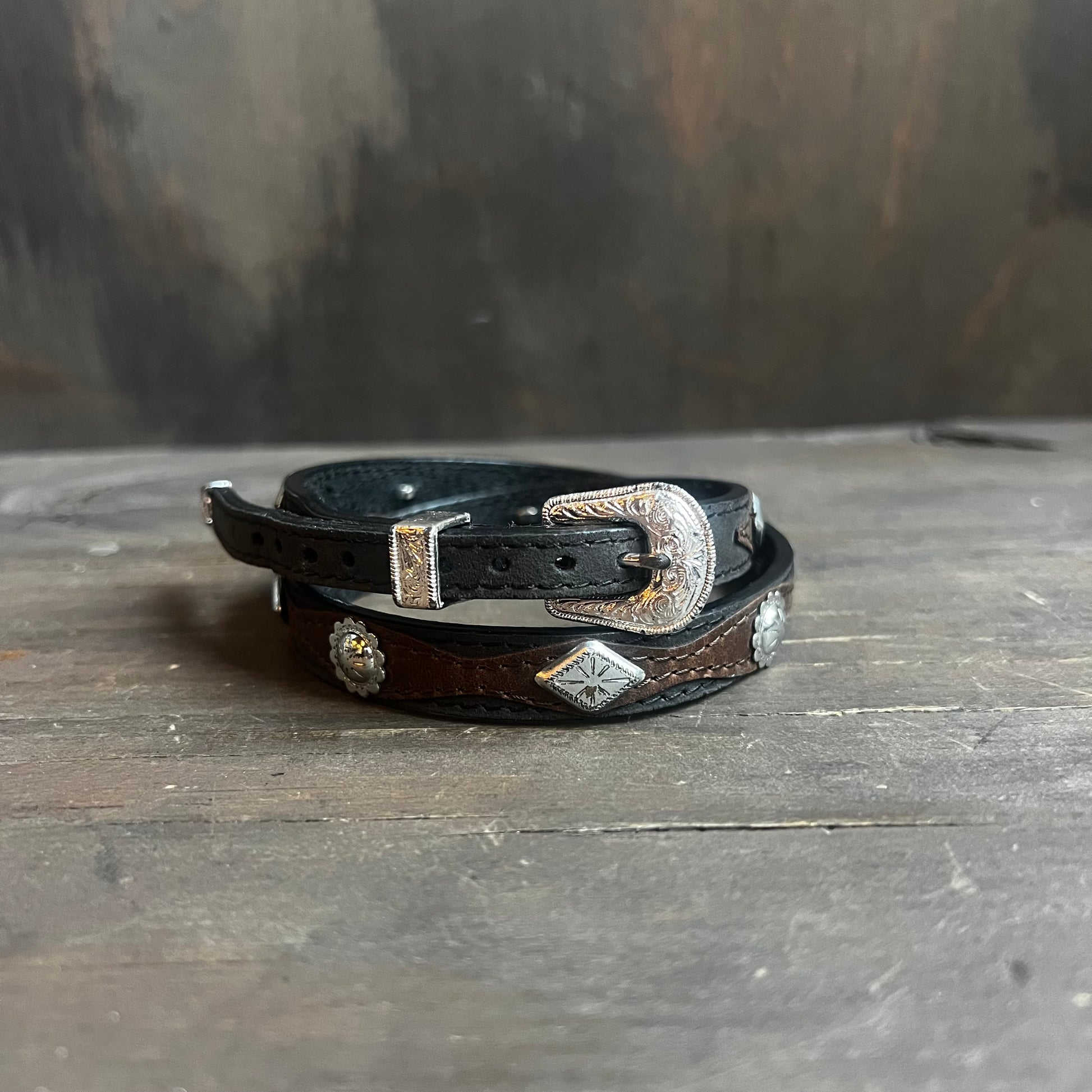 Black Leather Hat Band with Silver Studs