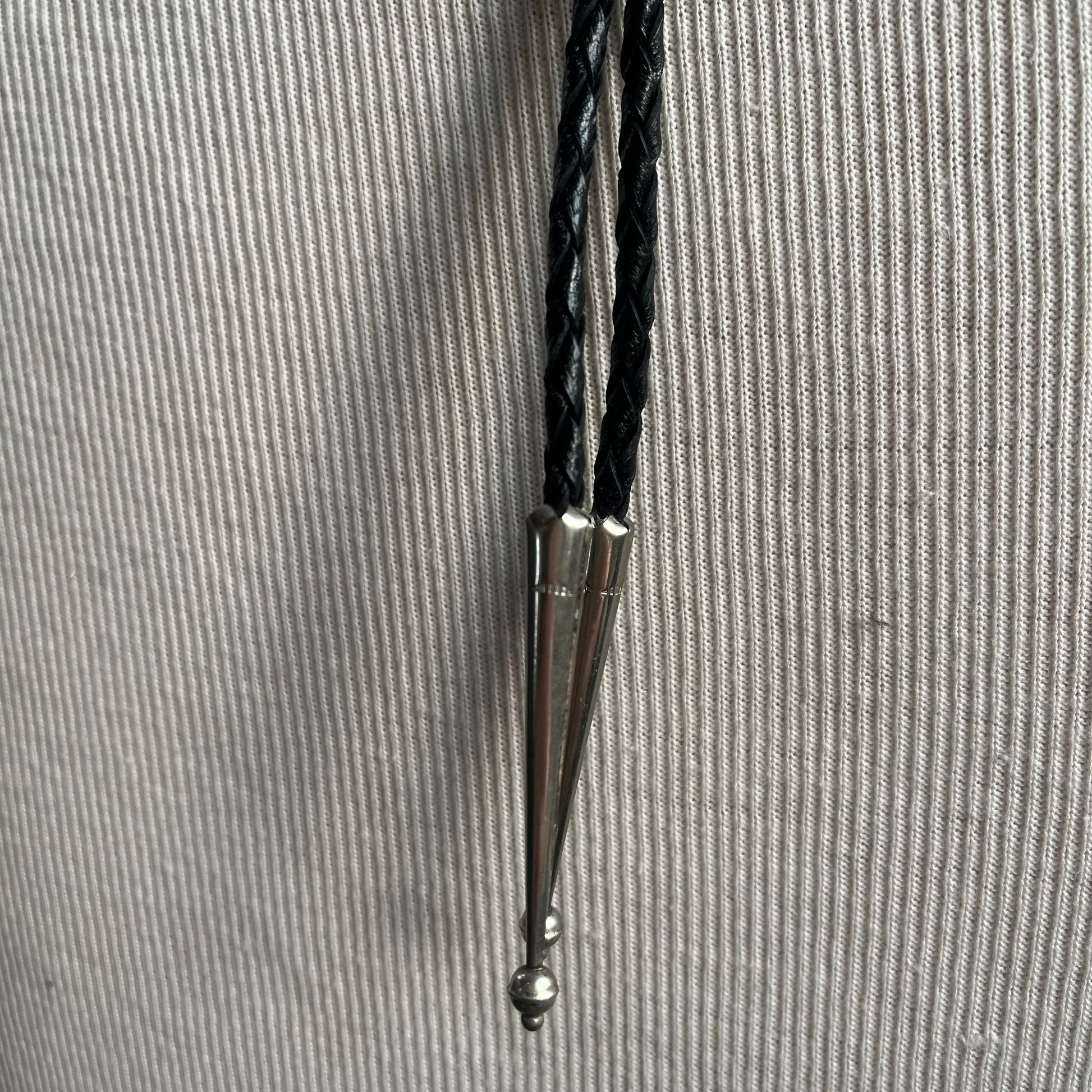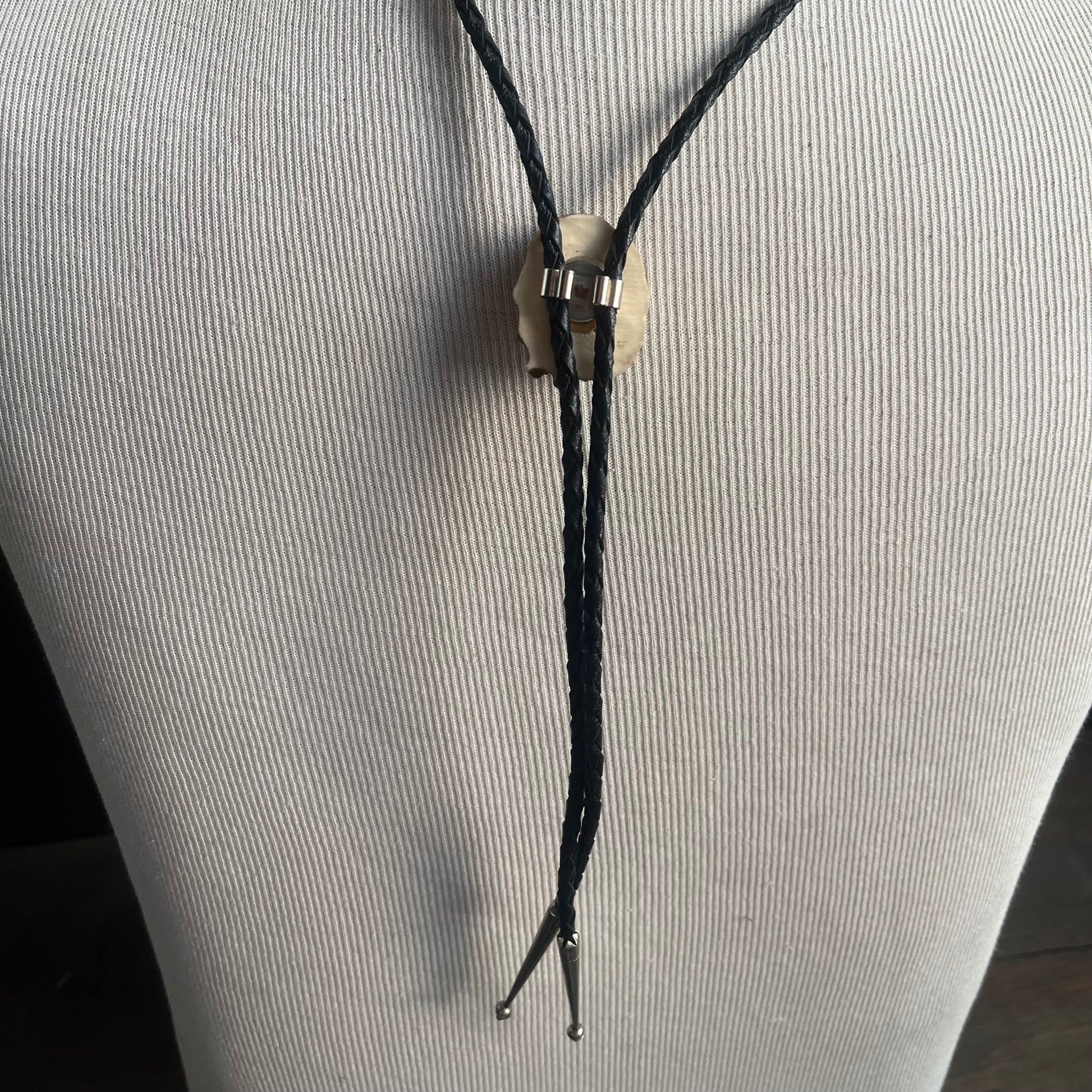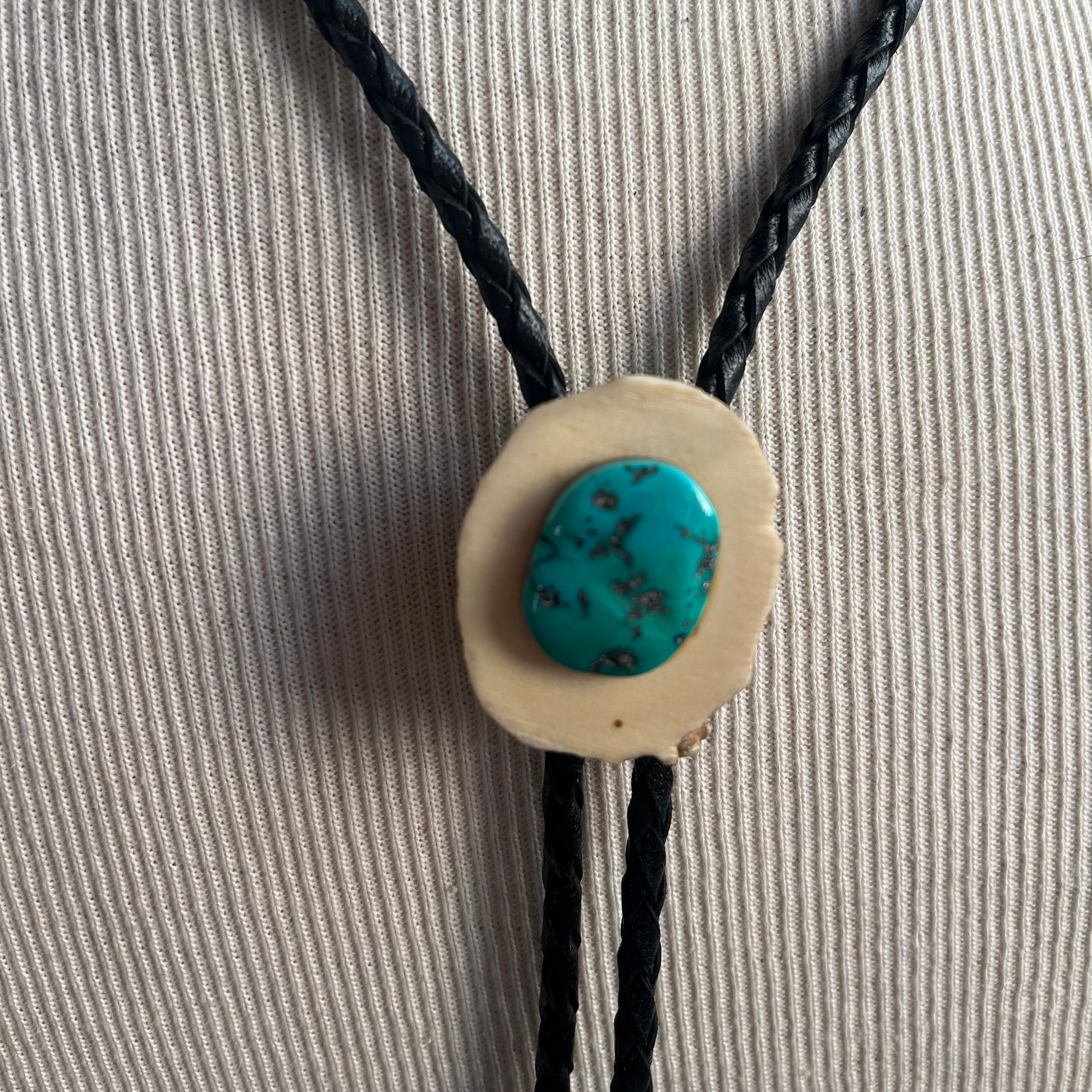 Black tie with wood and turquoise bolo