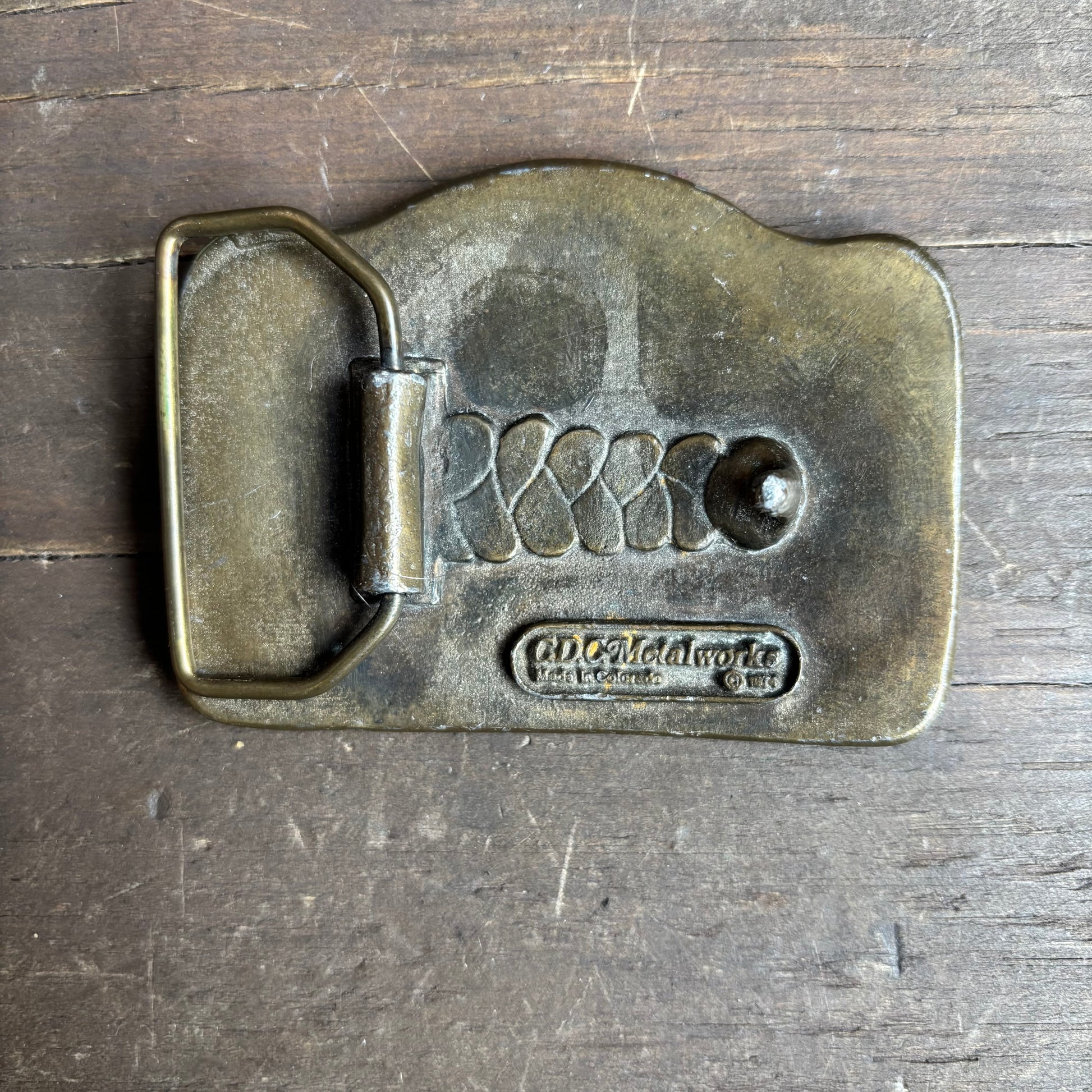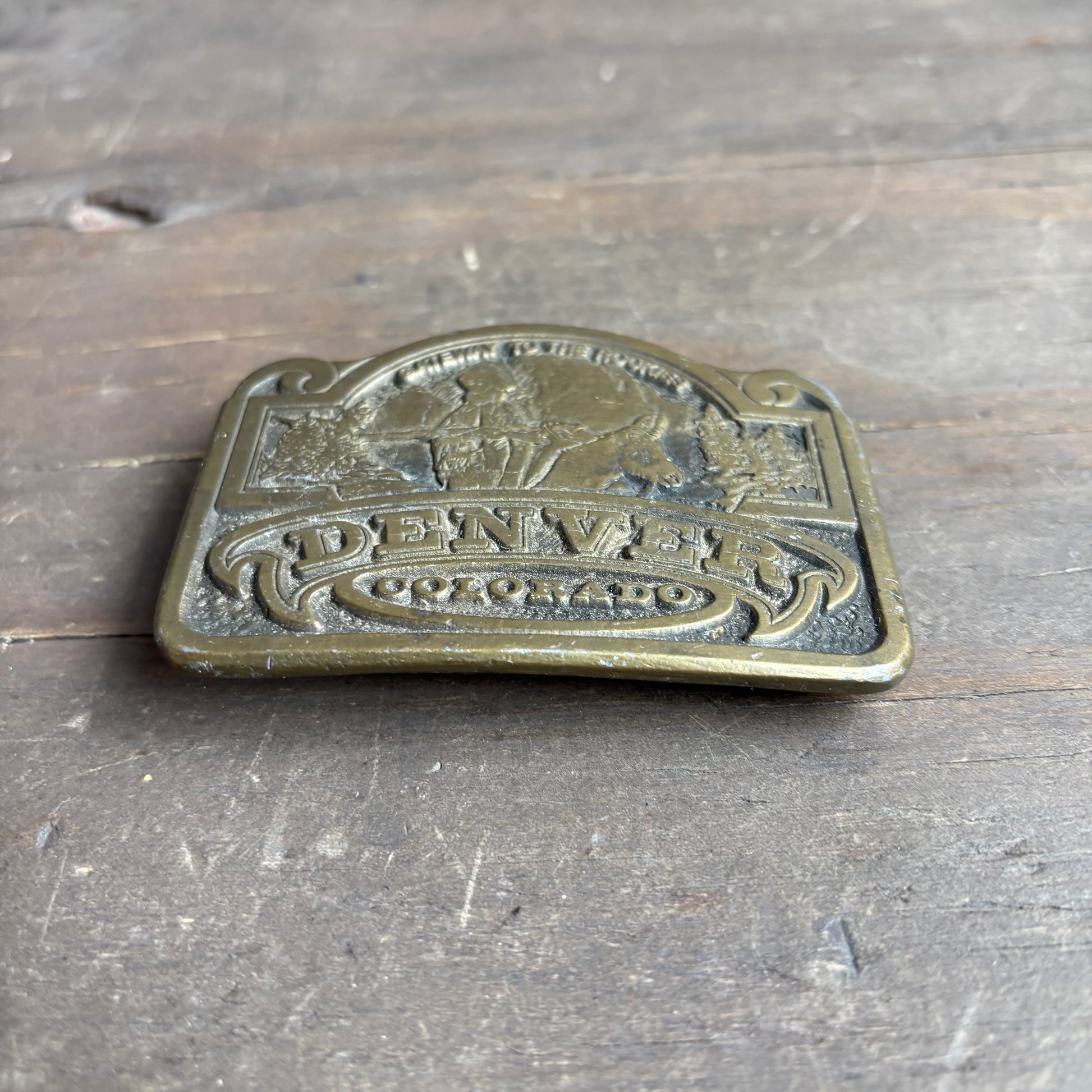Fabulous brass Denver belt buckle made in 1974 for CDC Metalworks, in good worn vintage condition