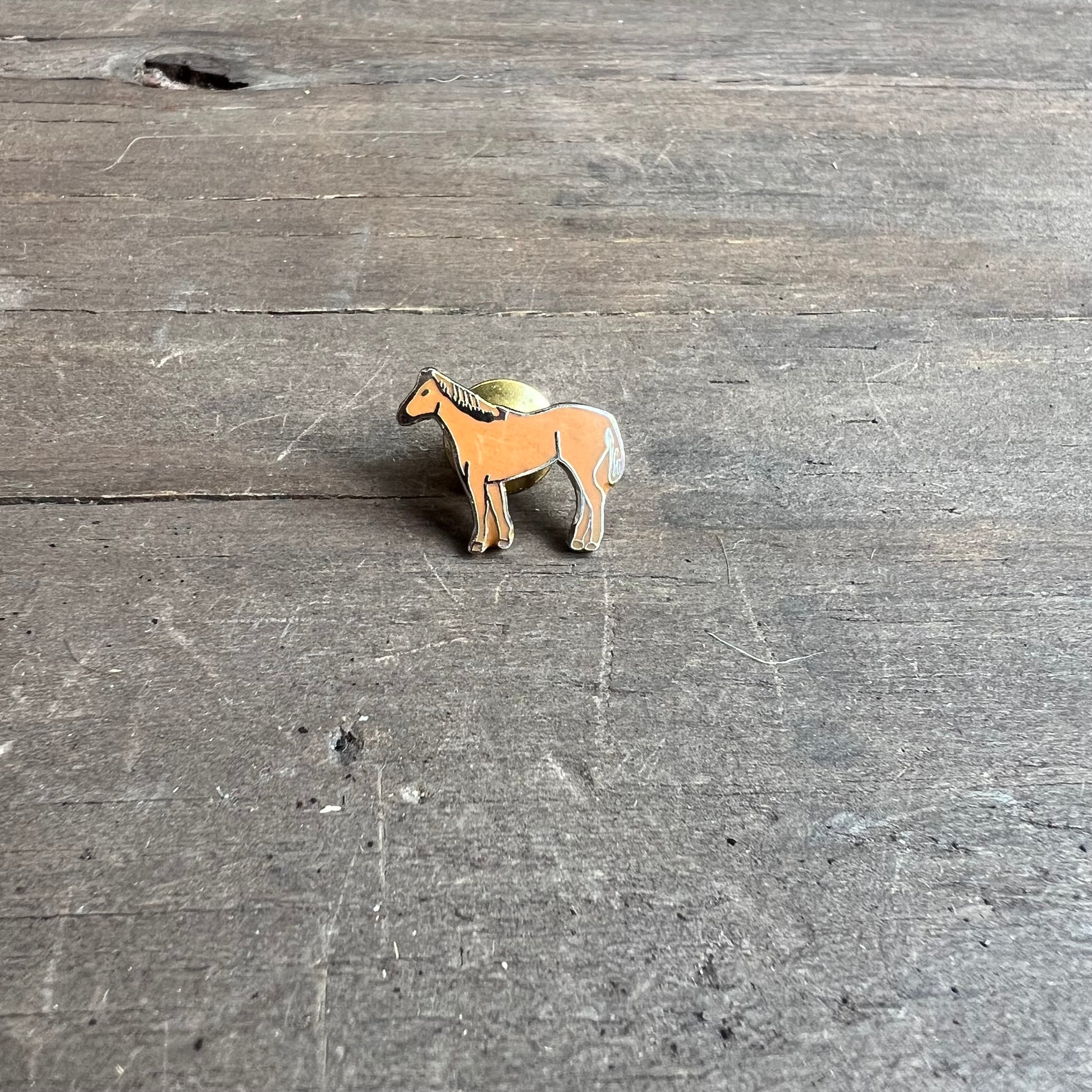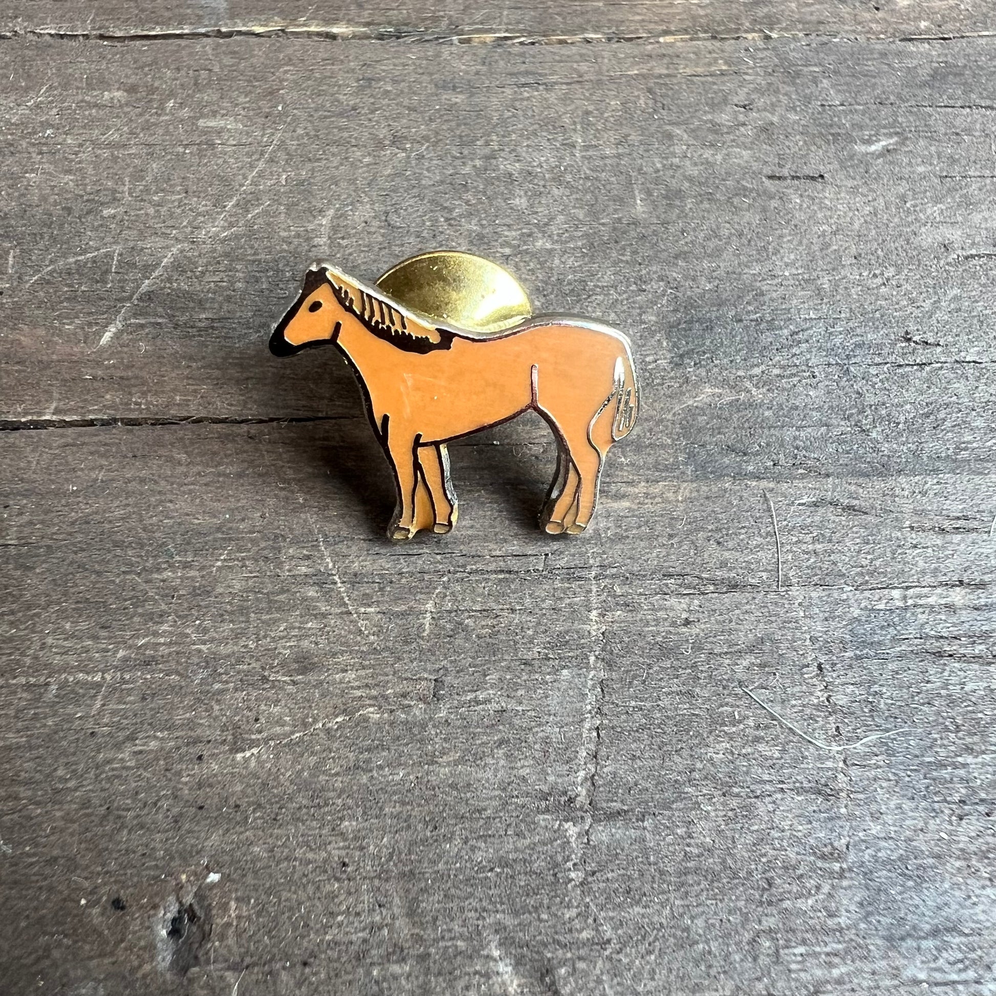 This adorable brown horse pin adds a touch of whimsy to your look. Pin it to your denim jacket, attach it to your favorite bag, or customize a hat! In great condition. See image with quarter for scale.