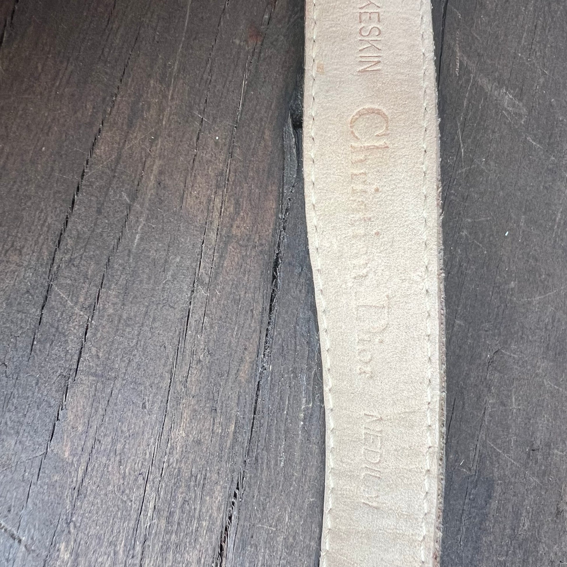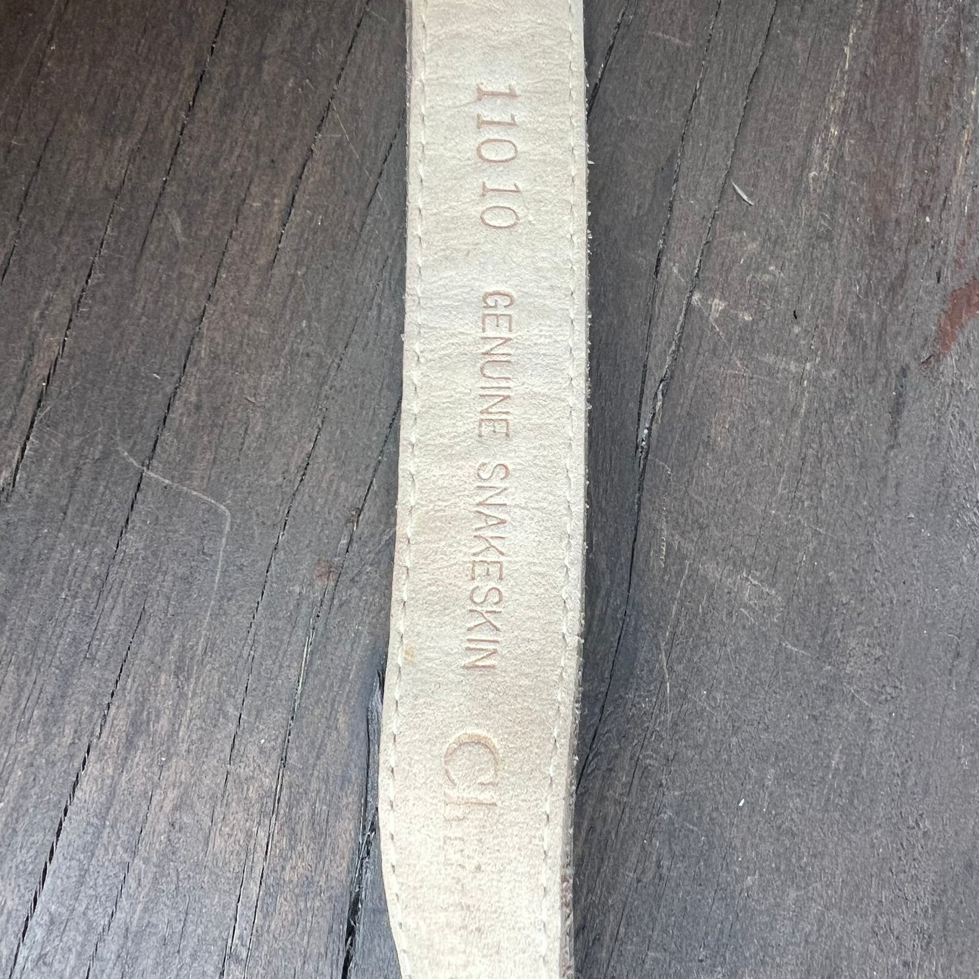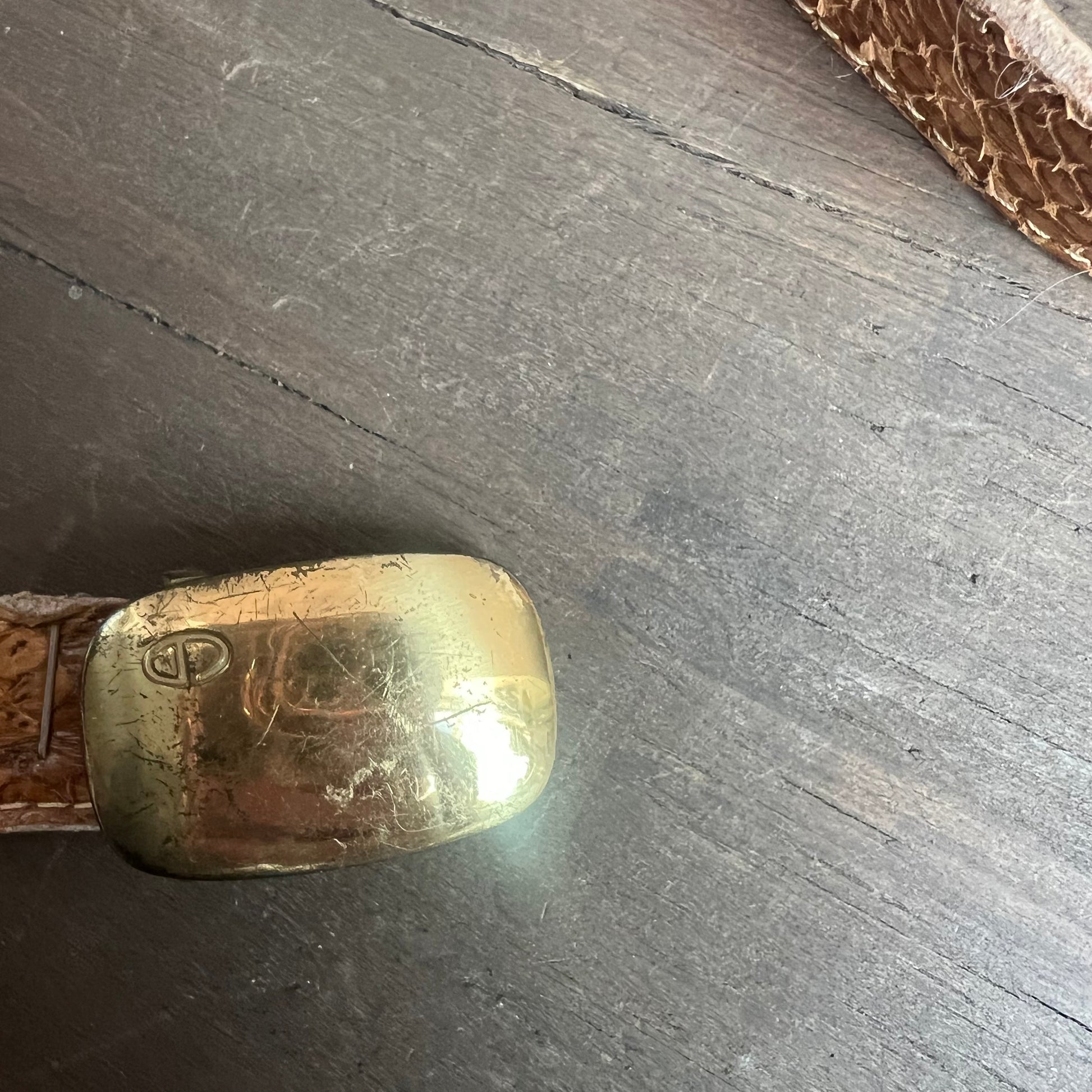 This belt is so classy and gorgeous, with a caramel colored snakeskin exterior. A sold brass buckle compliments the belt. Slightly worn from time, but adds to the vintage charm! Size M.
