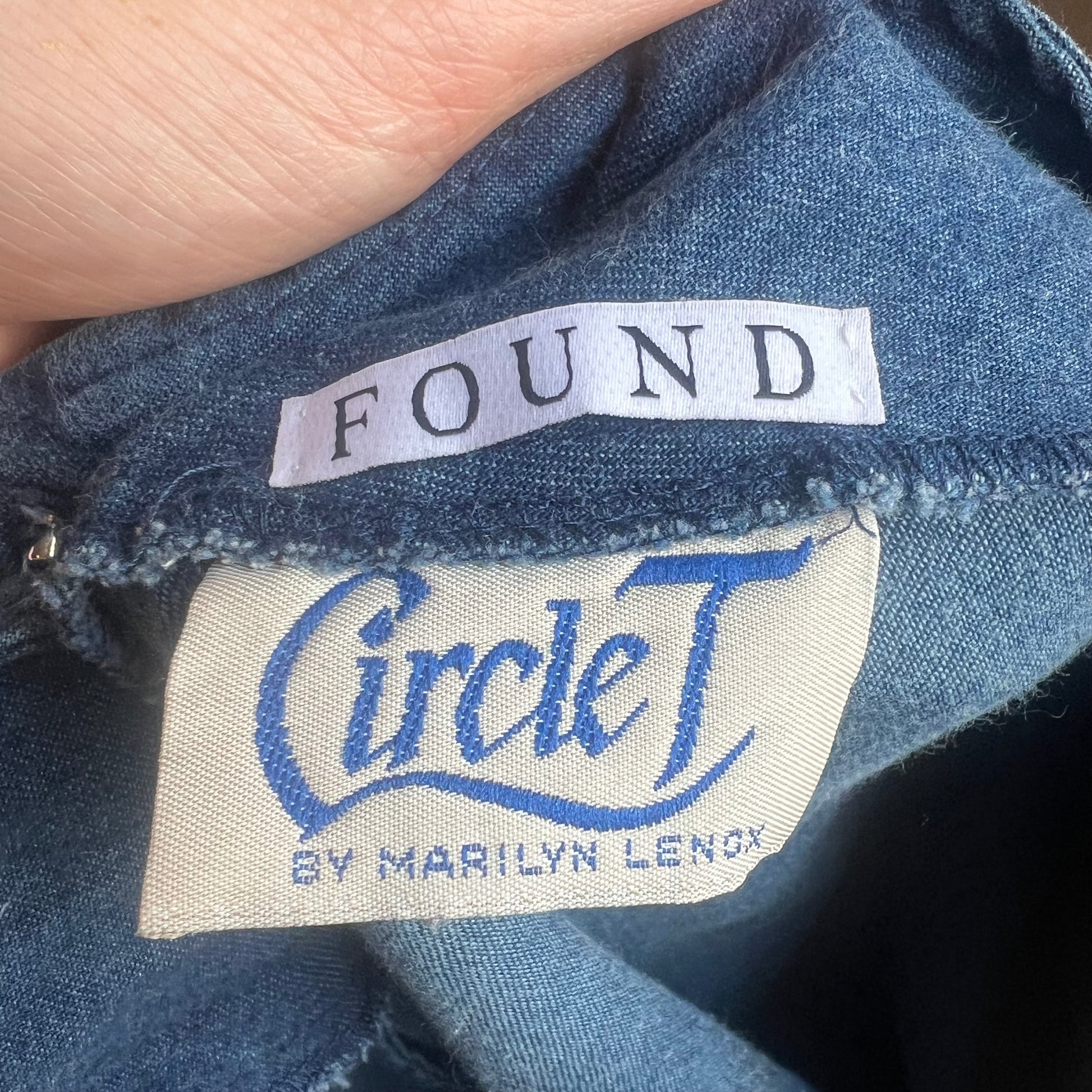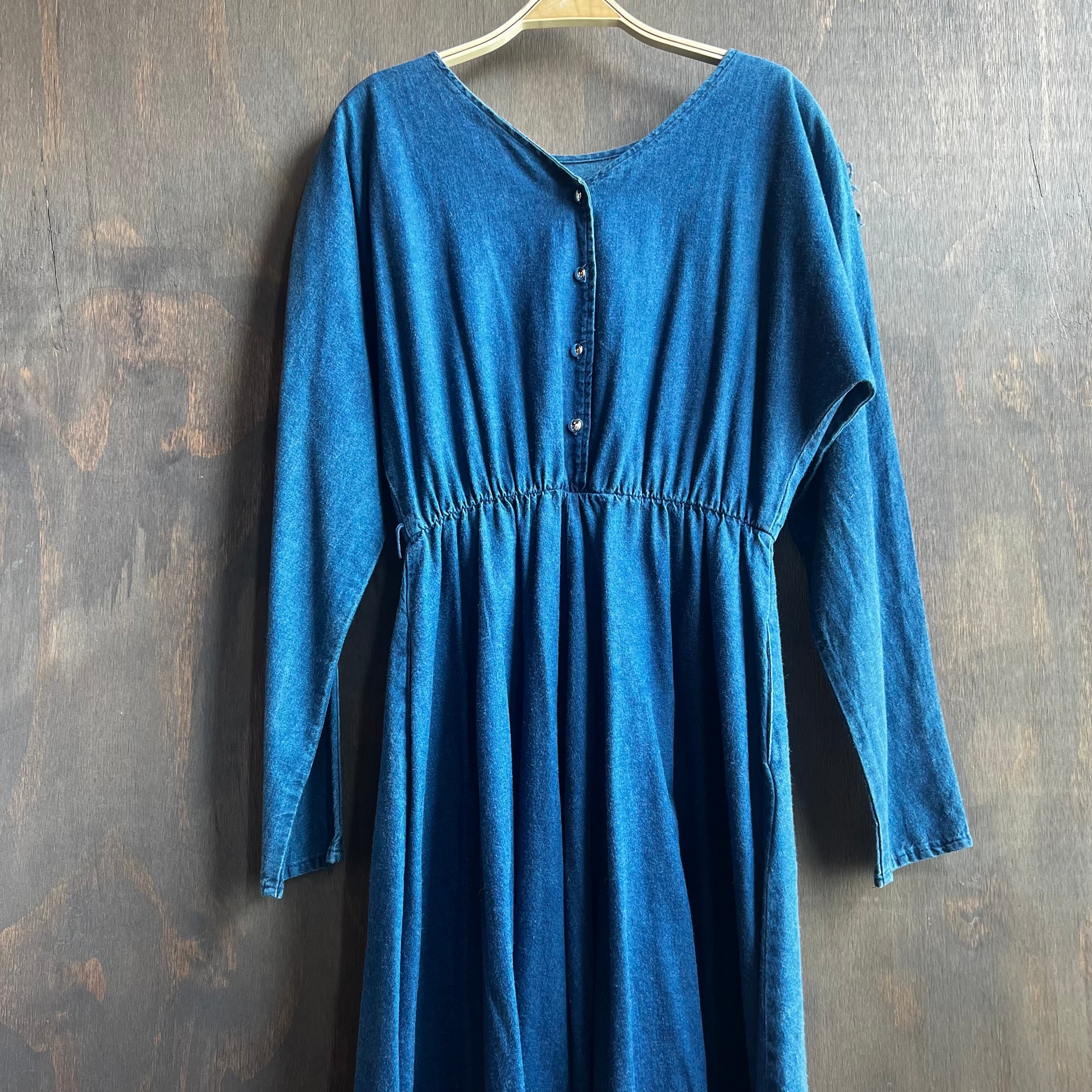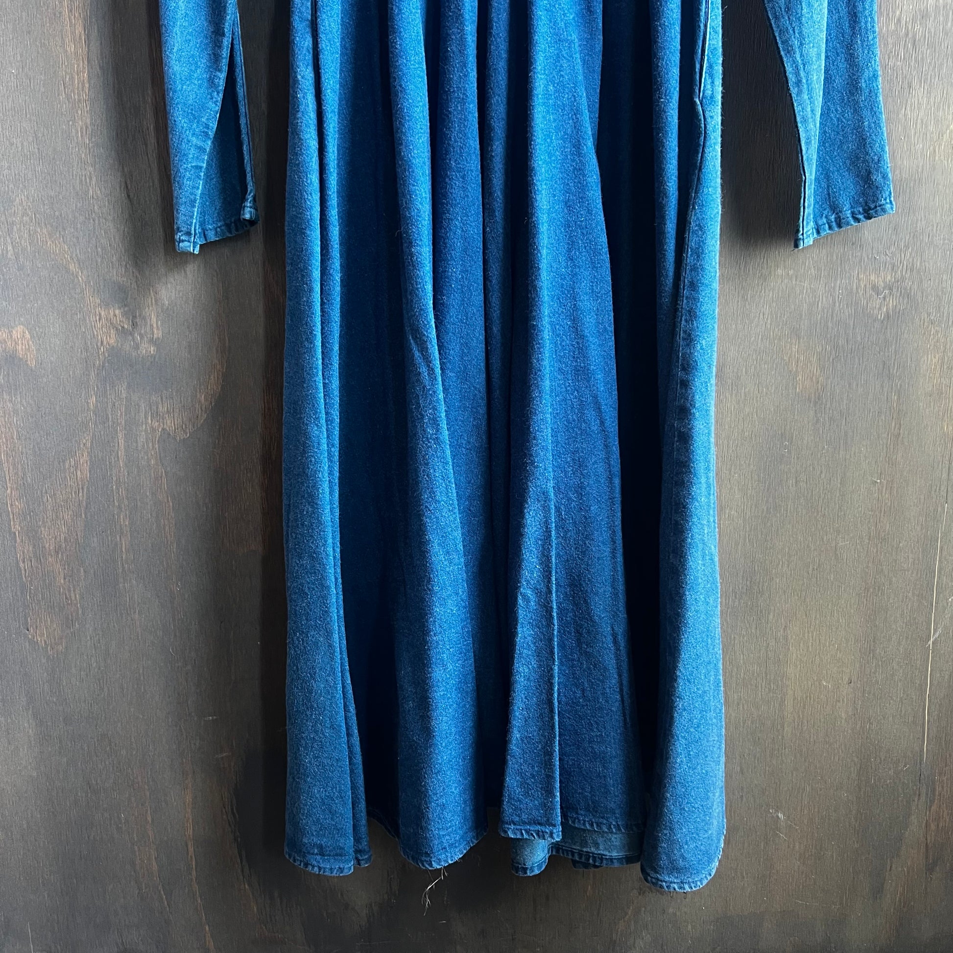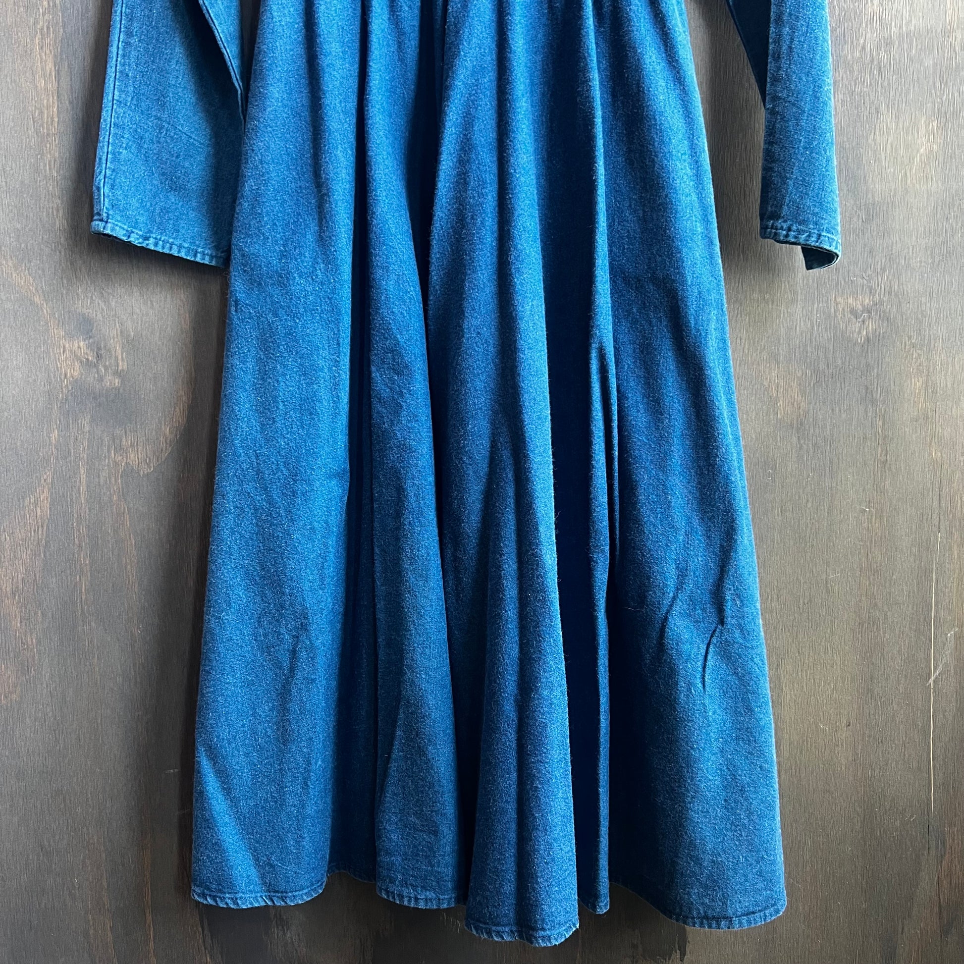 Gorgeous long sleeve denim dress with a denim ruffle chest and silver concho embellishments. In excellent condition. Fits size S.
