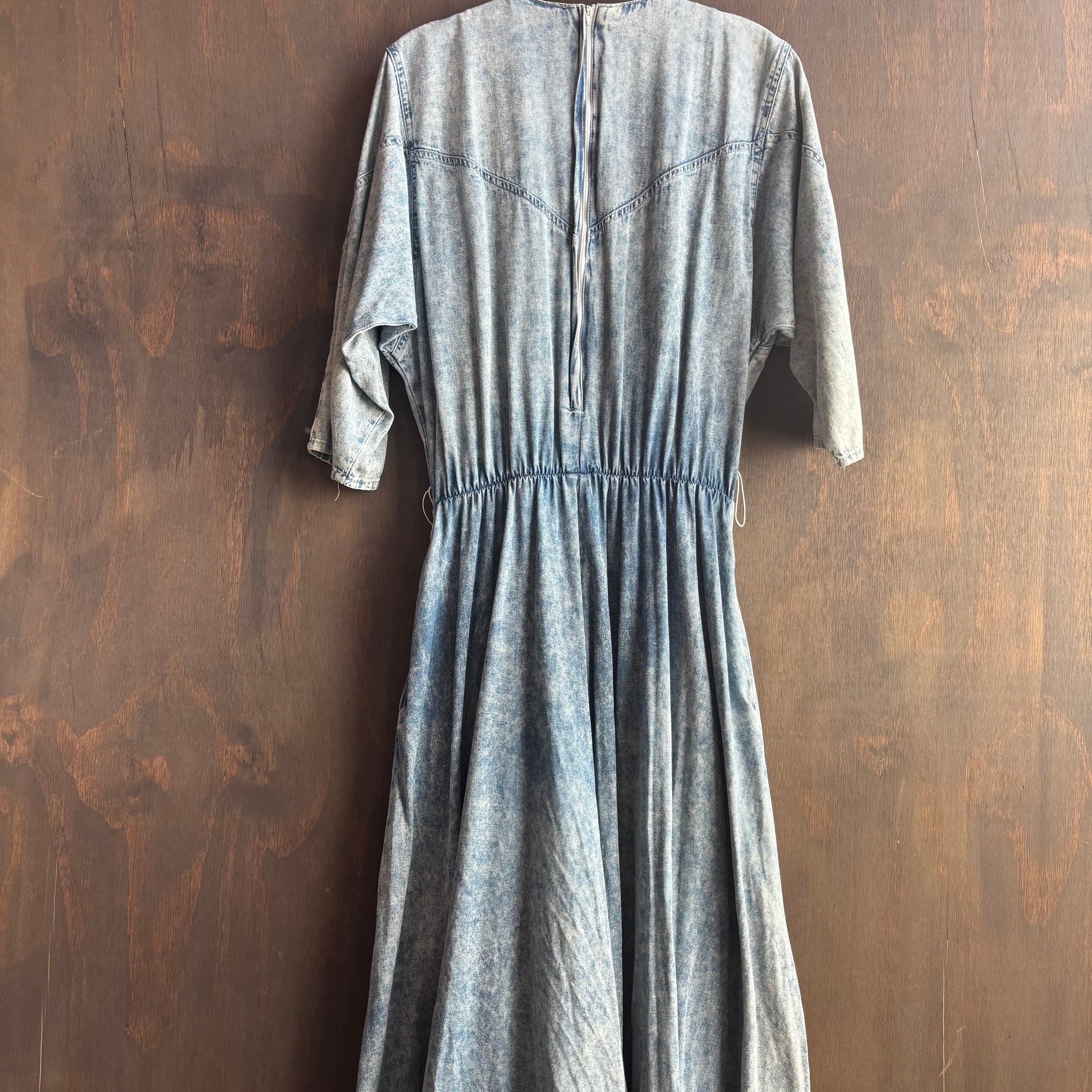 Fabulous vintage Colours 100% cotton washed denim maxi dress with belt, beautiful buttoned full skirt and horse head on front, size women's 12 / L, super fun late 80's piece.