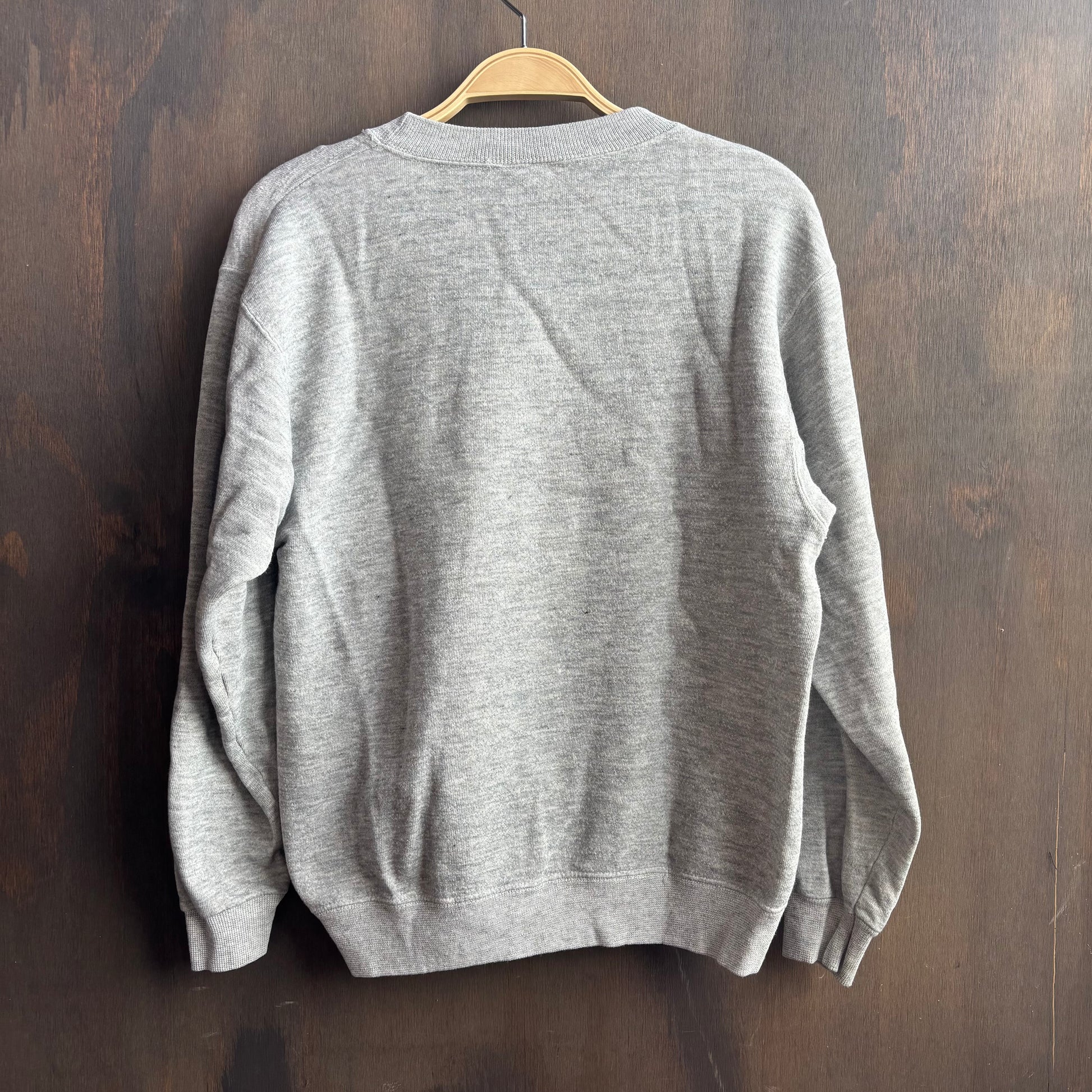 Custom grey "High Horse Energy" sweatshirt with hand done chain stitch embroidery, size M, get ON your high horse before you rock this one!