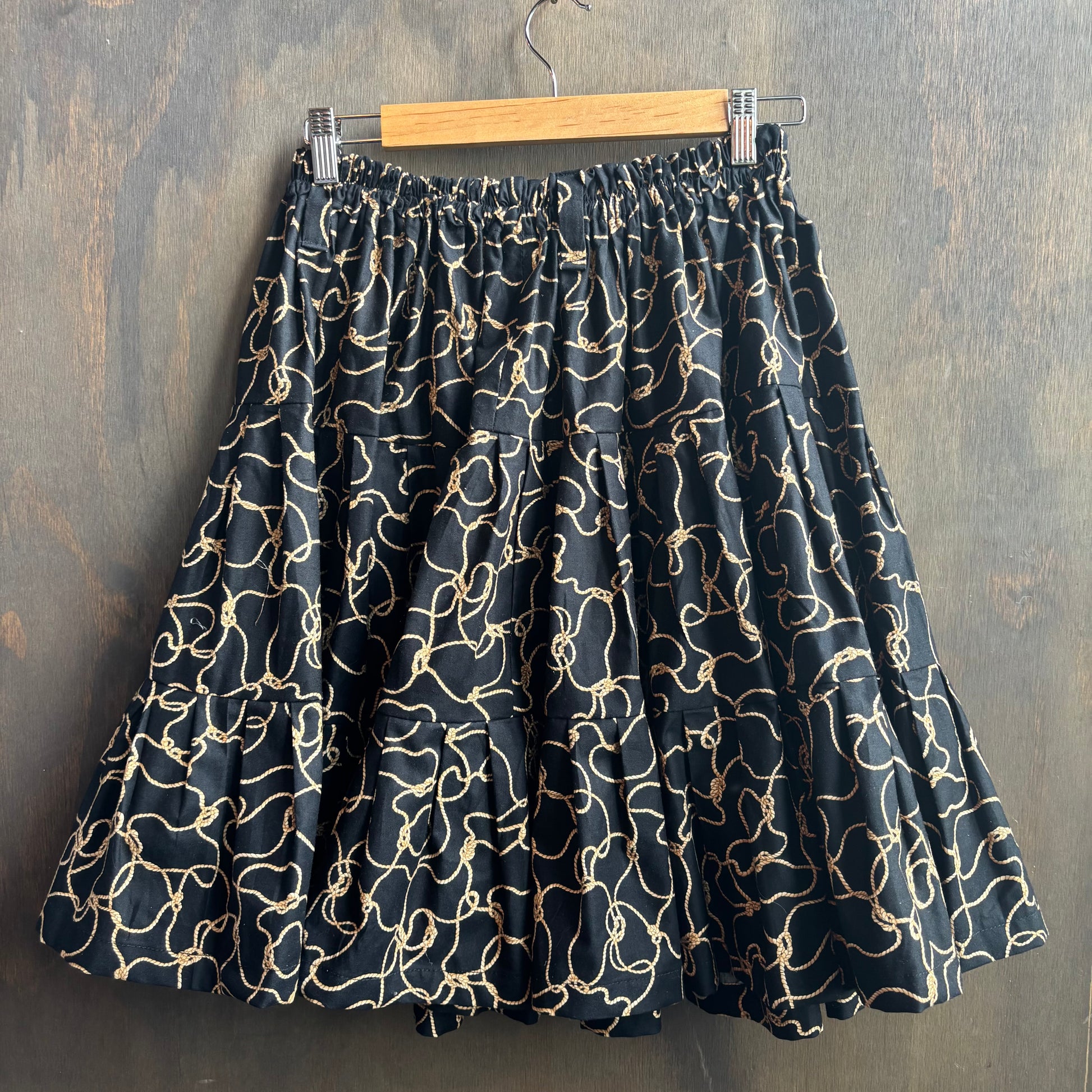 Beautiful handmade skirt with rope print. Gorgeous lightweight cotton perfect for cooler days. 22" long.