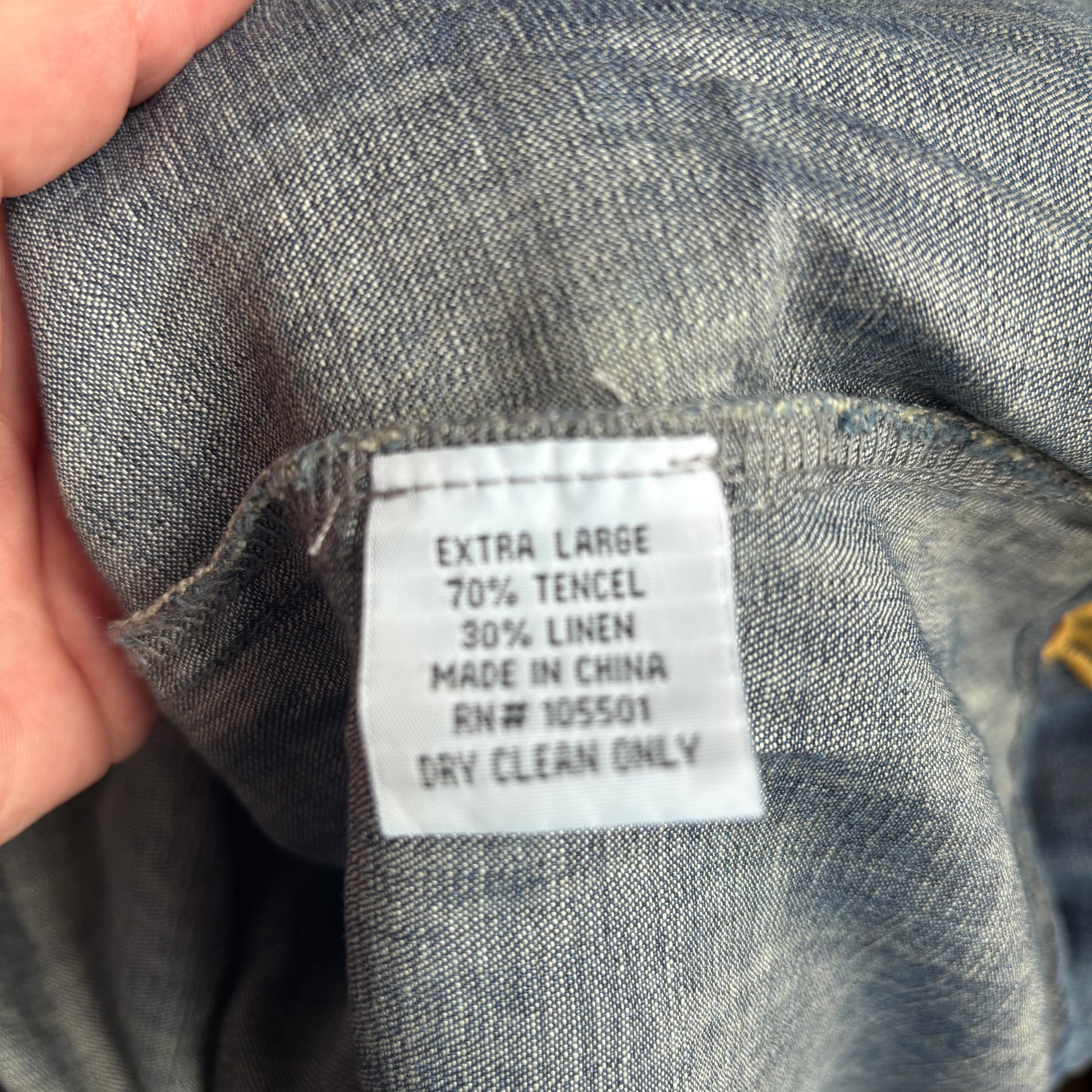 Beautifully embroidered denim pearl snap in a size XL made by Double D Ranch, in great condition.
