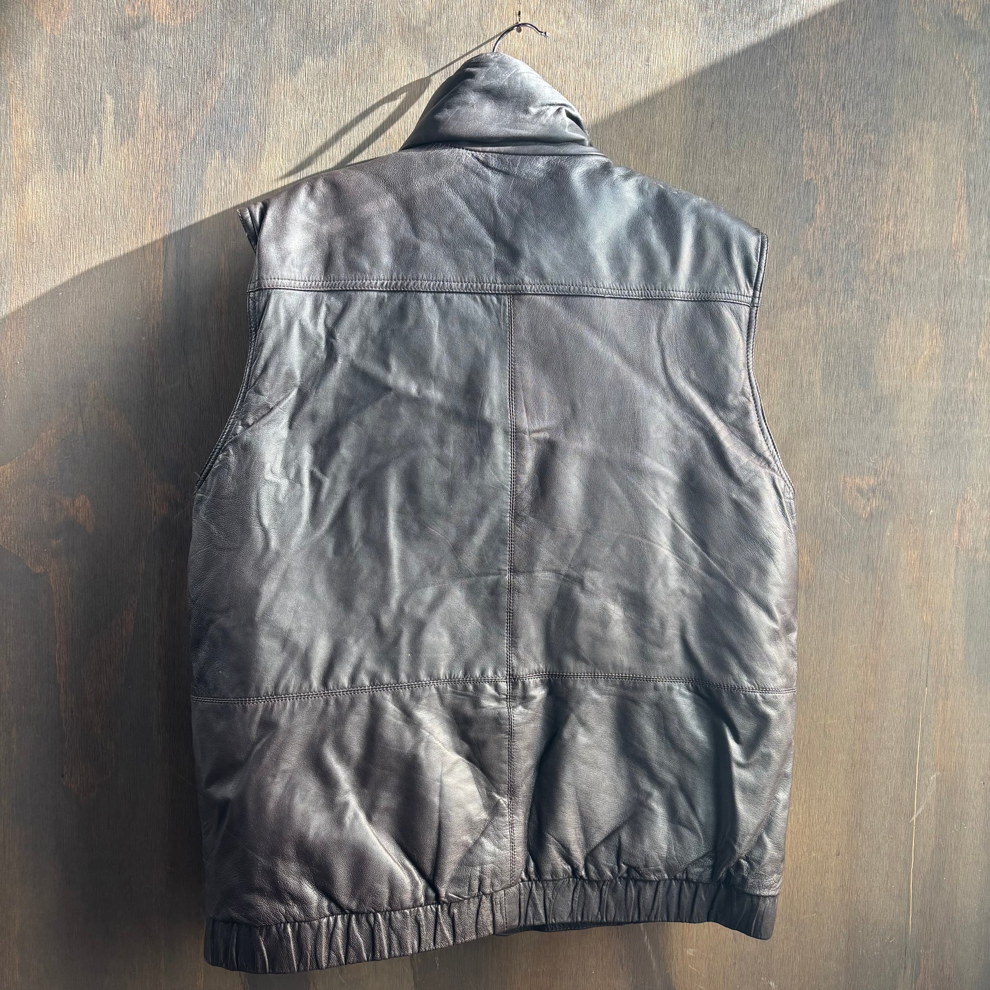 Totally 90s Eddie Bauer brown leather puffer vest in great condition with zipper and snap closures, size M