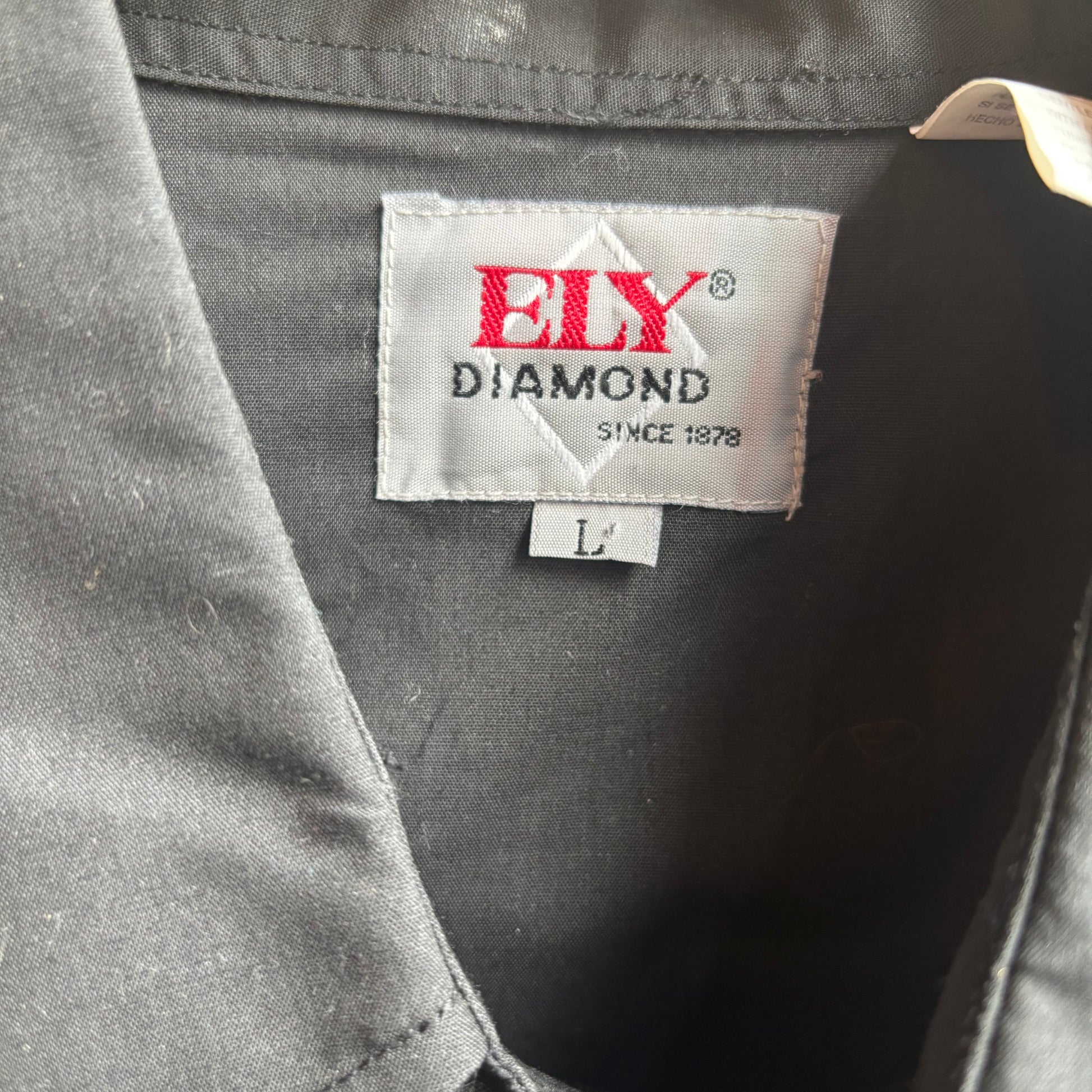 Great looking and classically western Ely Diamond black cavalry bib pearl snap shirt in great condition, size L
