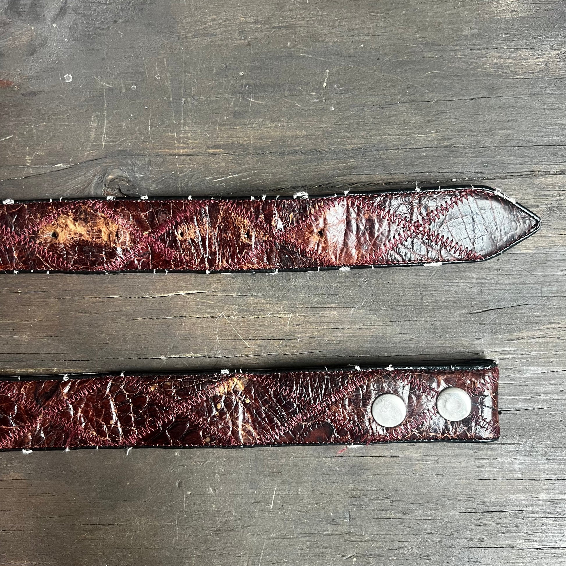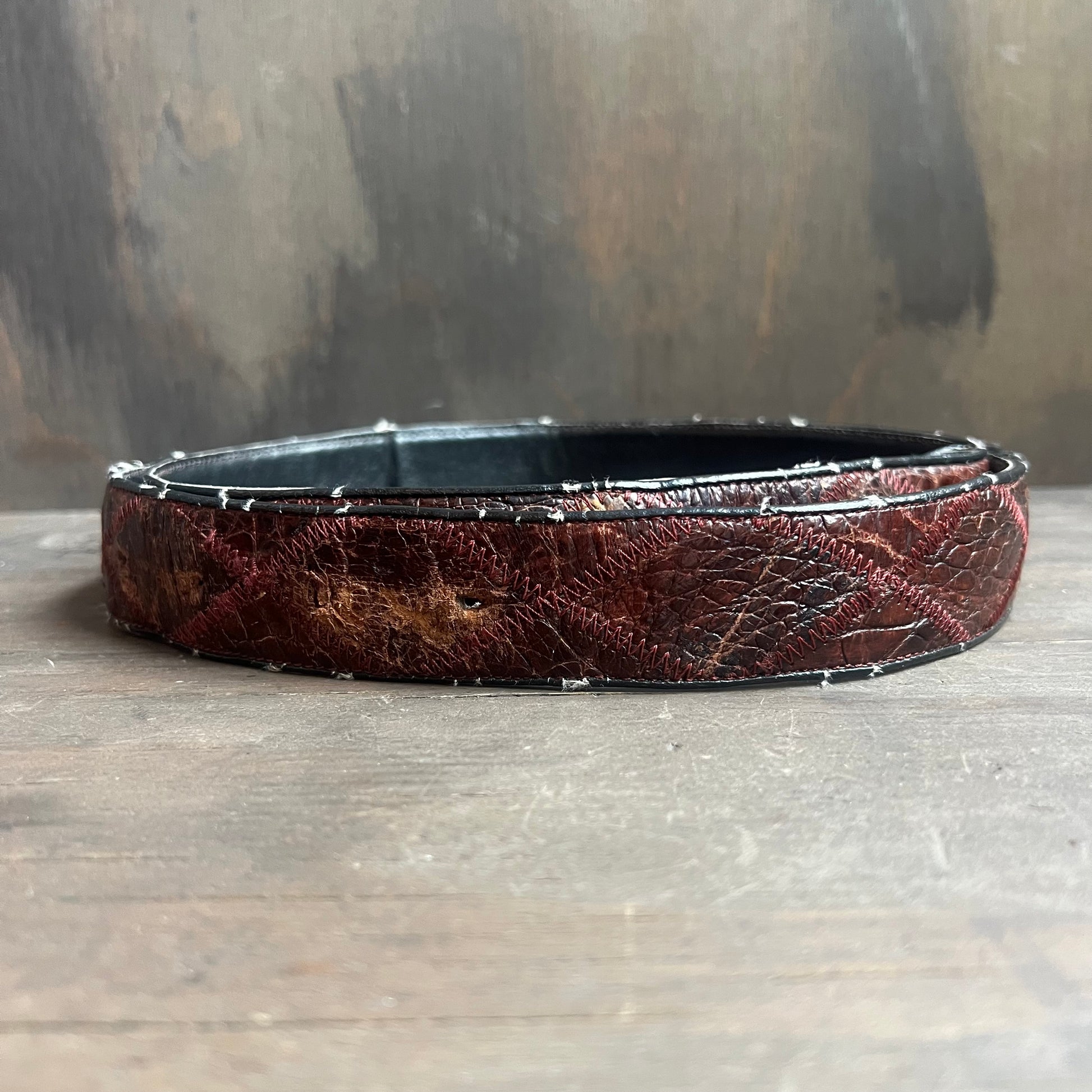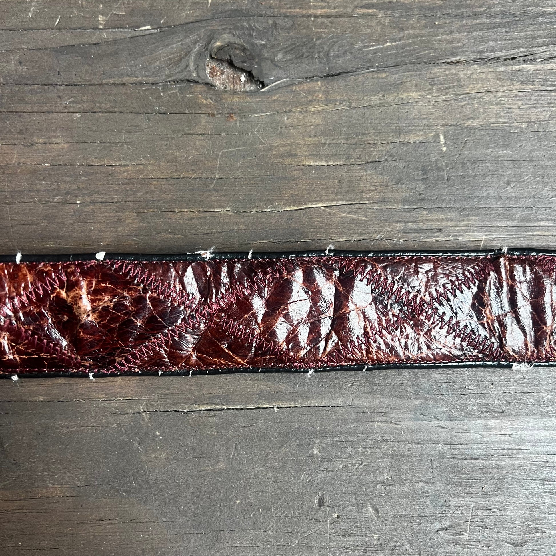 Vintage faded leather belt. The belt doesn’t have a buckle, so you can customize. Fits 28-32” waist (size S).