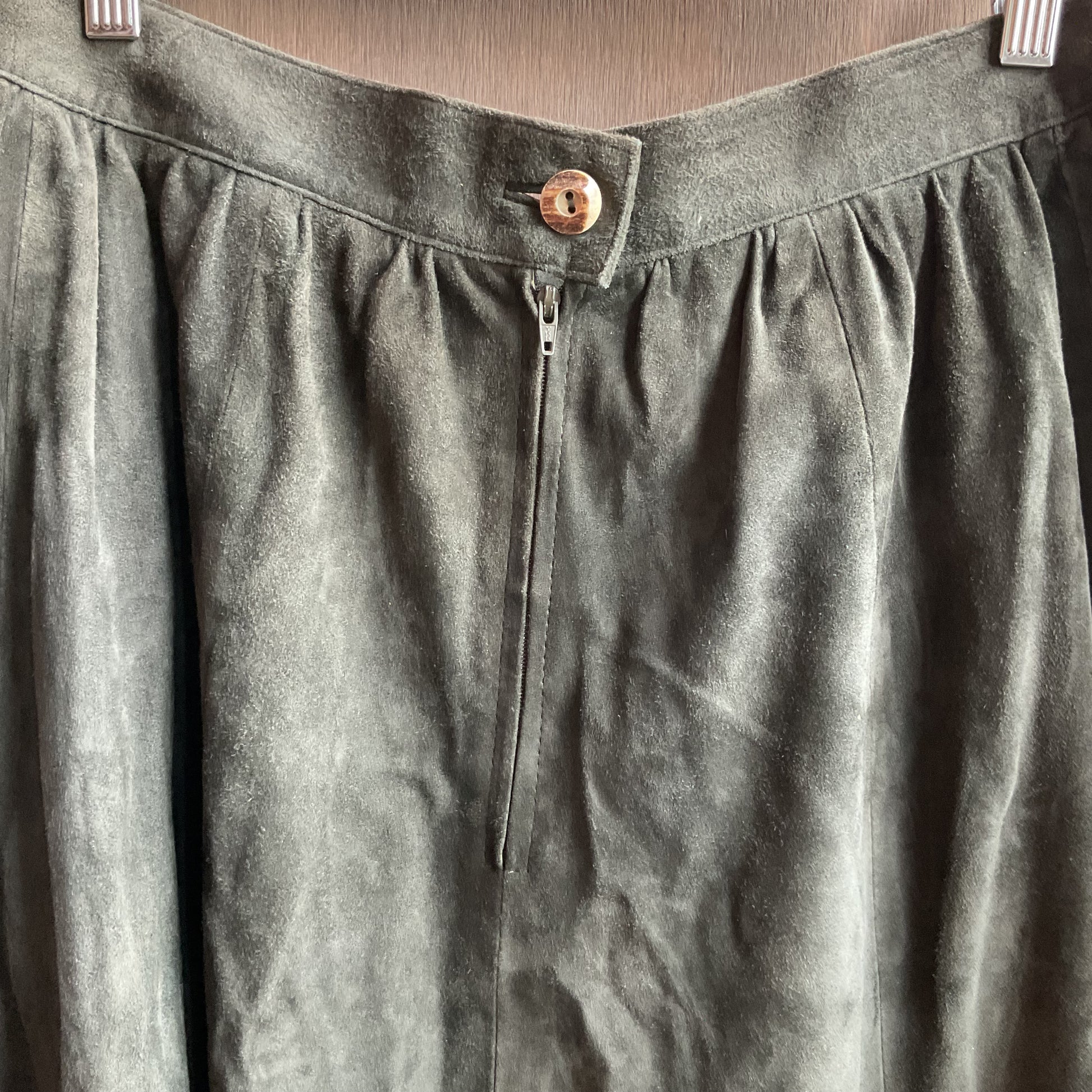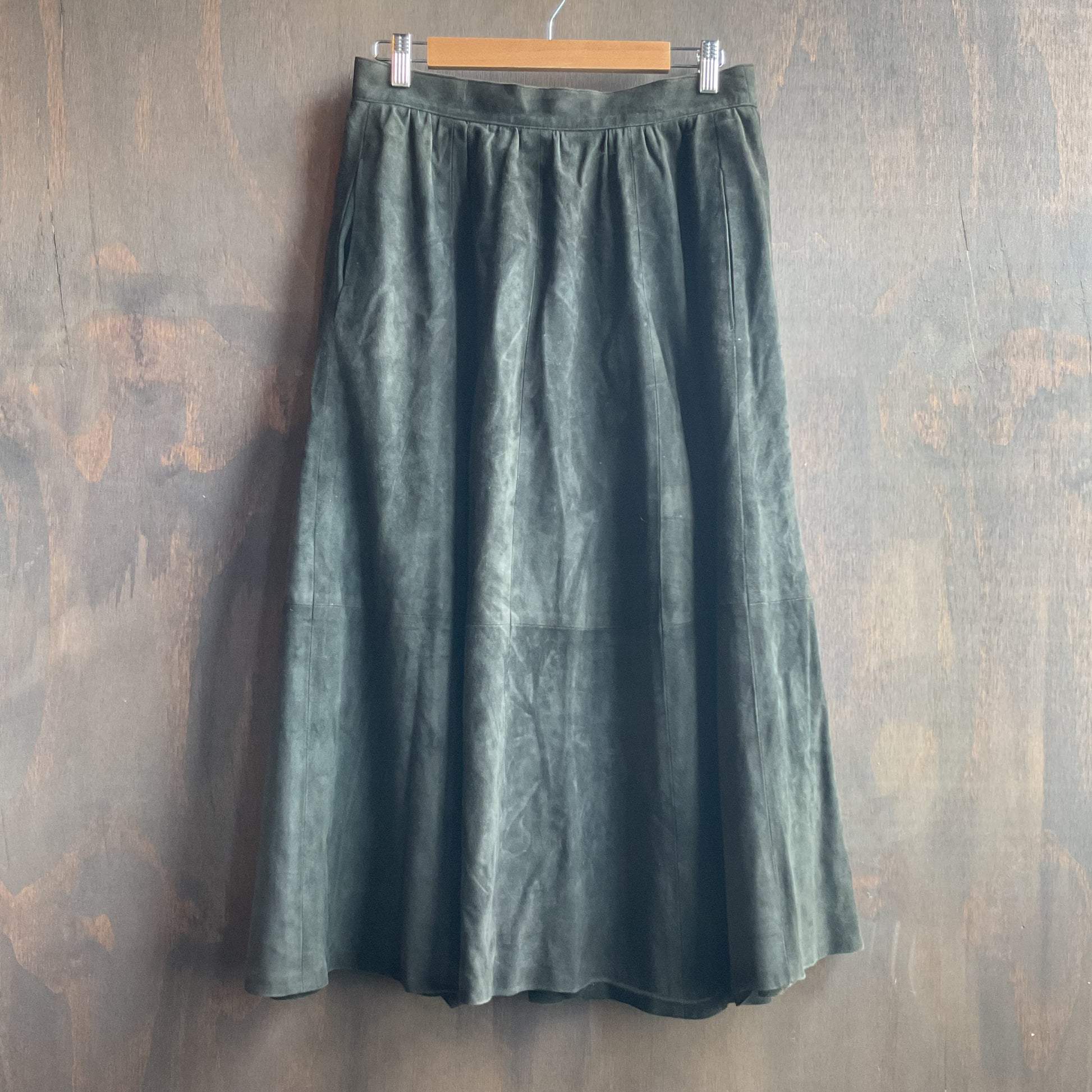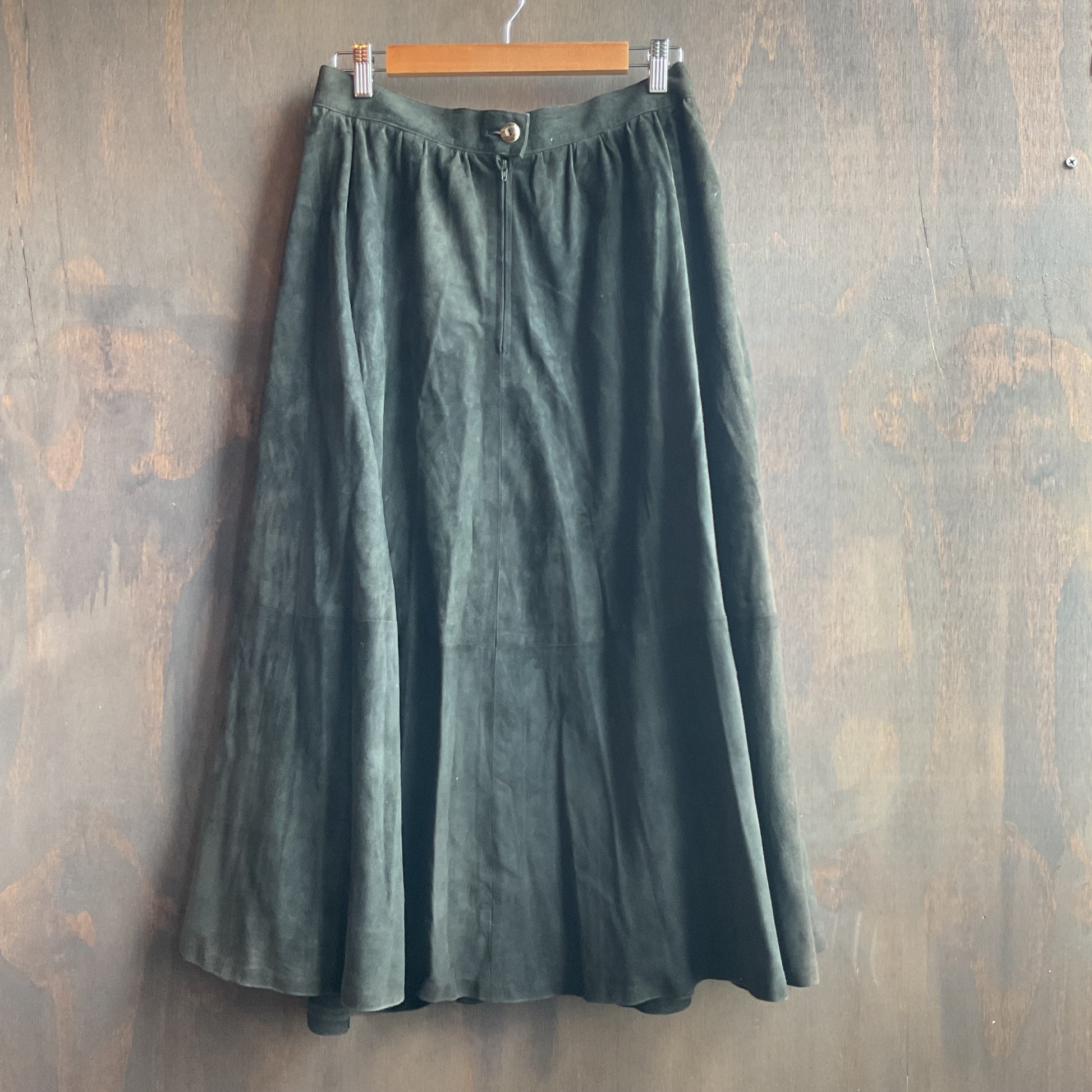 Gorgeous forest green maxi skirt, slightly pleated. Zips and buttons in the back. In great condition fits 32" waist (size M).